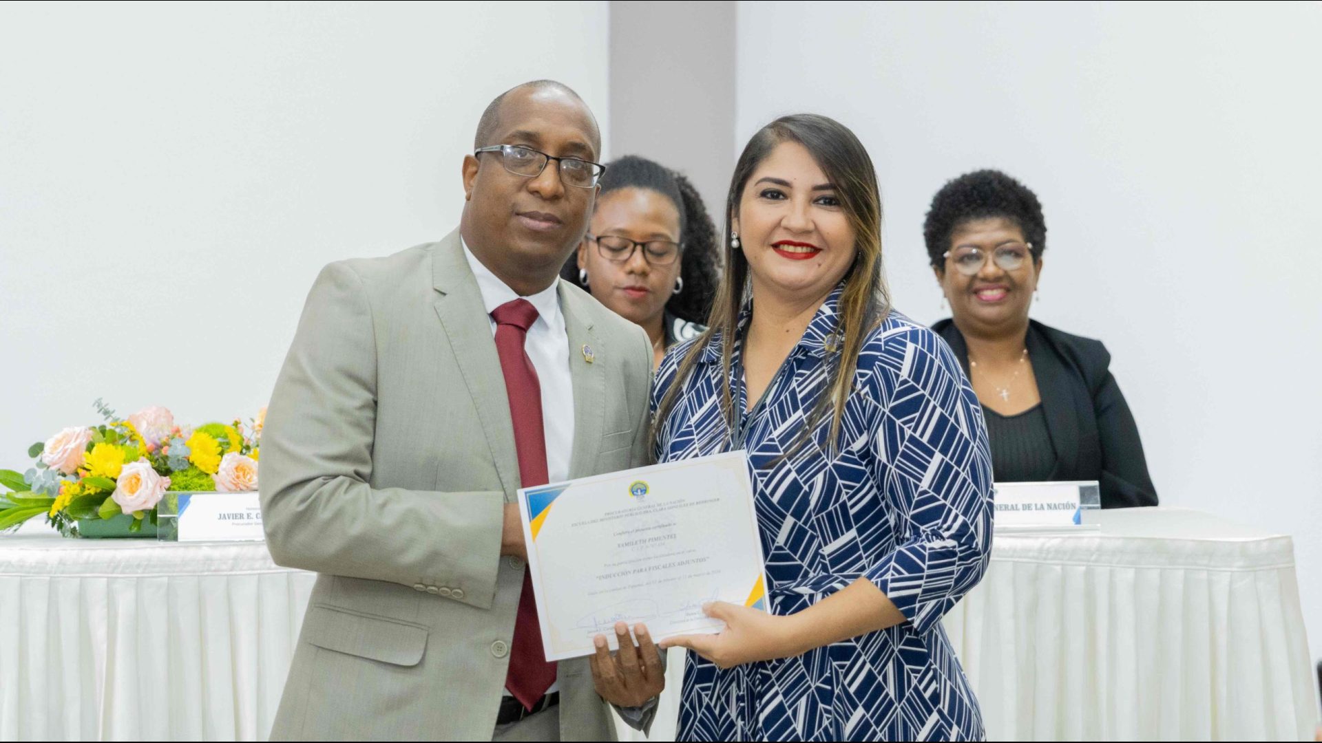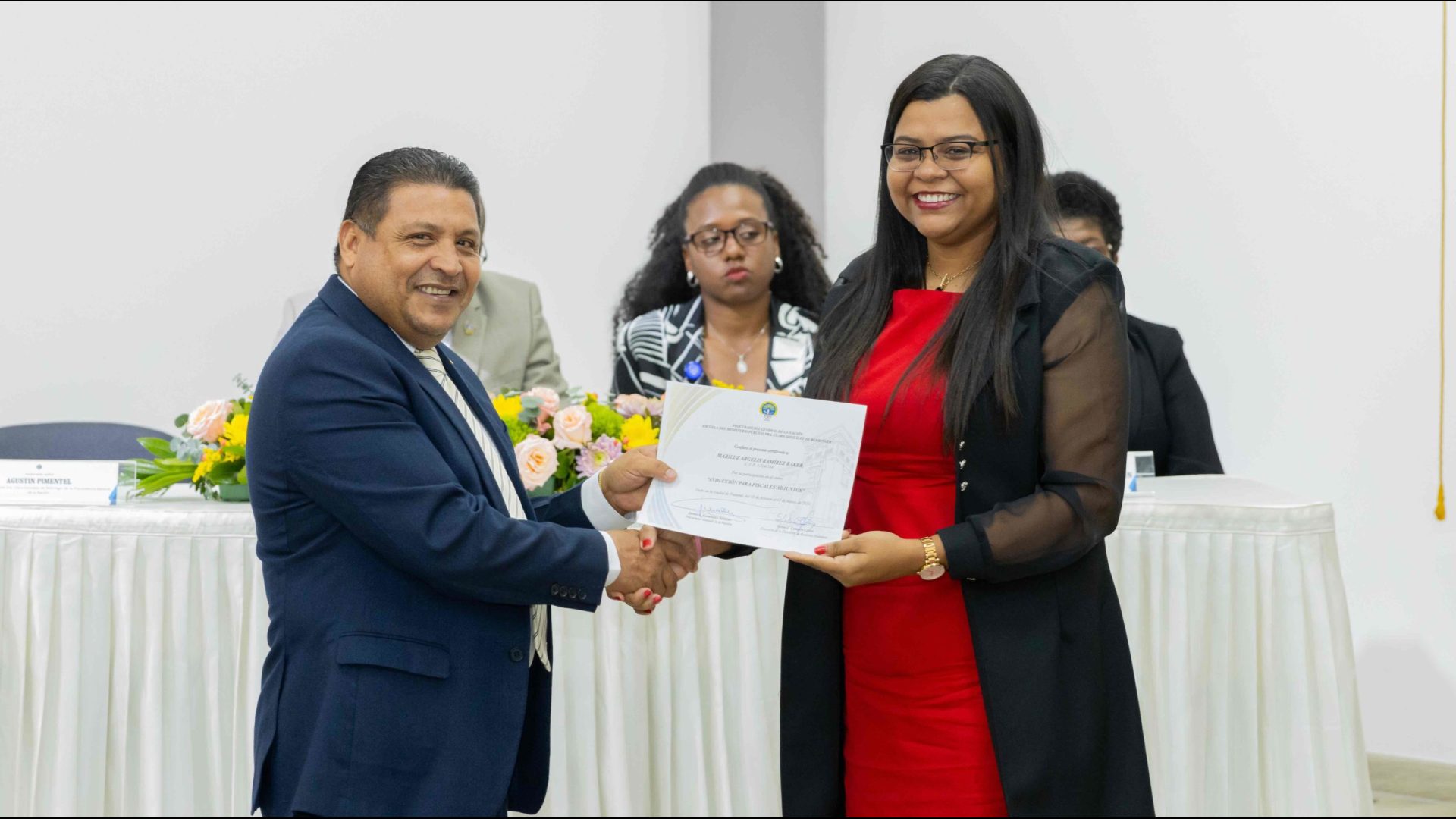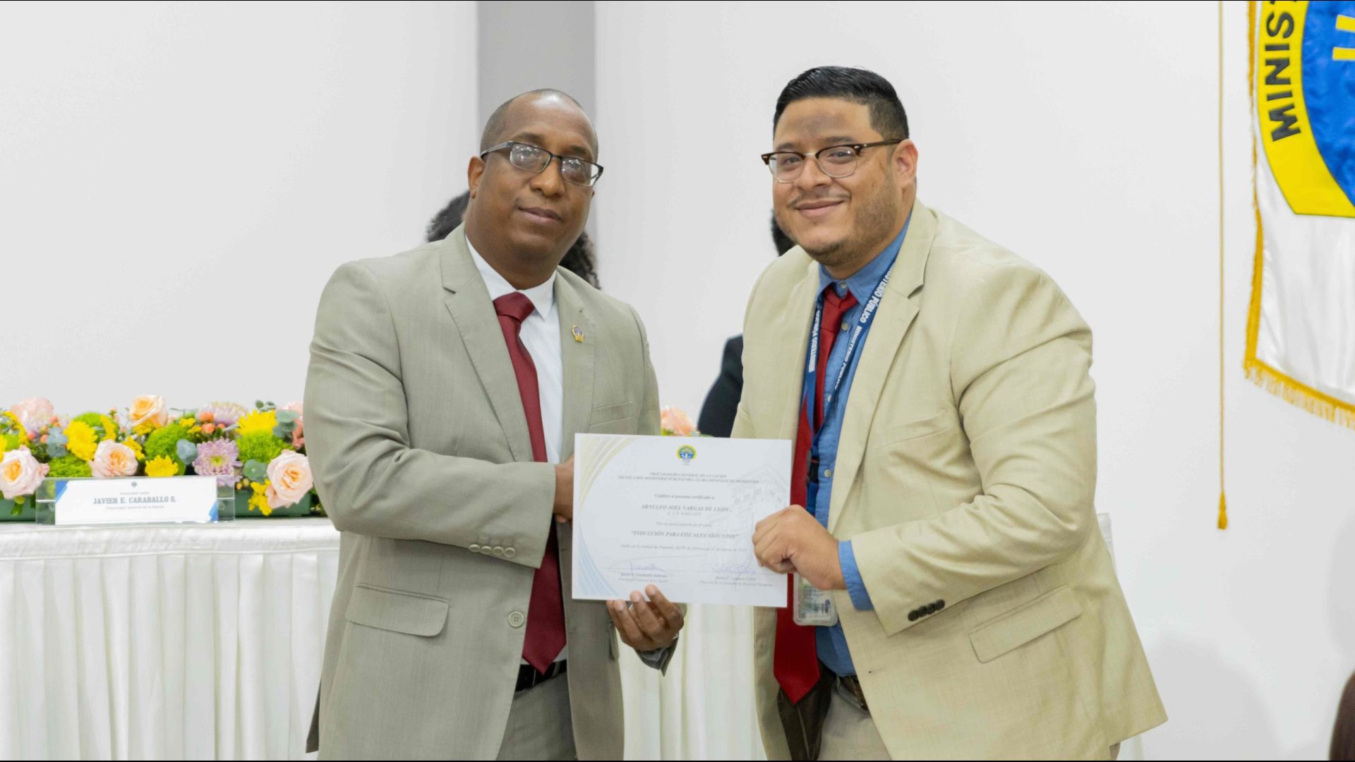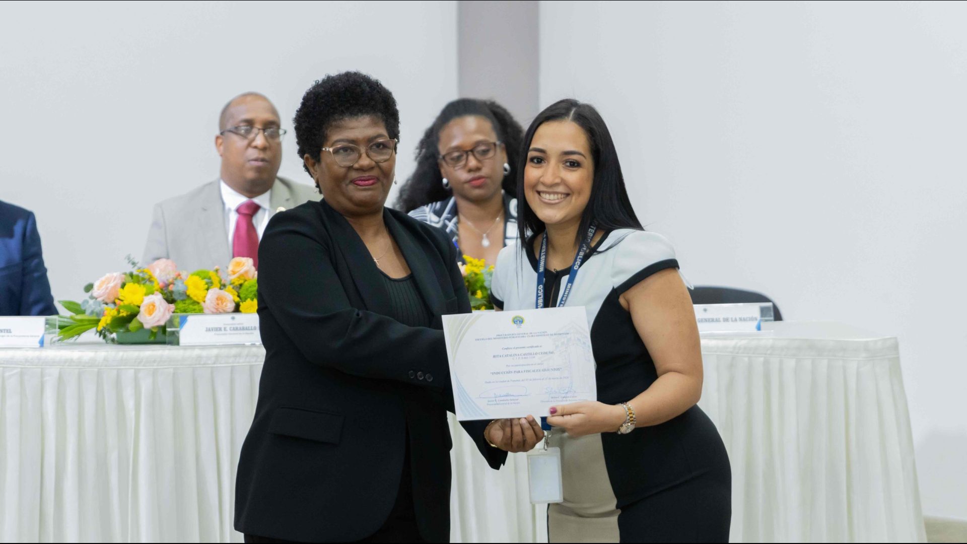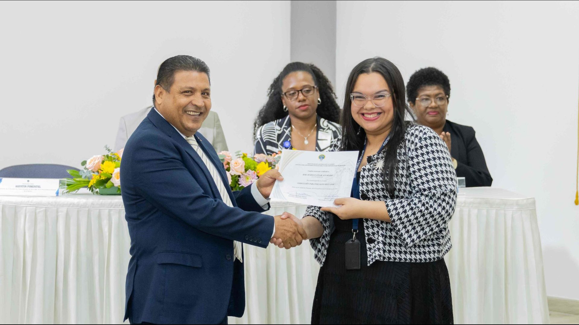 El Procurador General de la Nación, Javier Enrique Caraballo Salazar, destacó que estos fiscales han sido nombrados luego de pasar por un riguroso periodo de selección, luego de llegar a la institución mediante un concurso abierto donde se les sometió a diversos exámenes de conocimiento, se les dio capacitaciones, un curso de inducción, una pasantía y un examen de inducción y reciben su certificado que los acredita como idóneos para ser Fiscales Adjuntos y les reconoce una plaza de trabajo a los que pasaron con mejor puntaje.