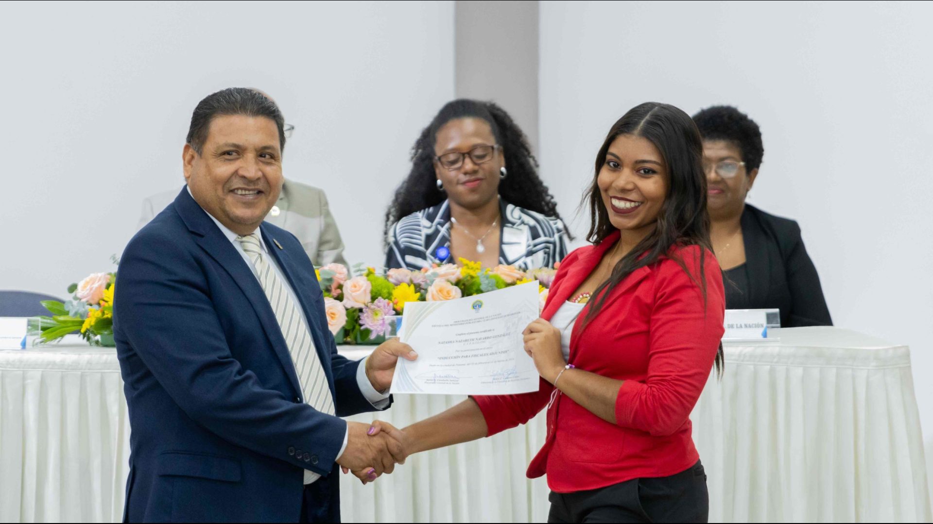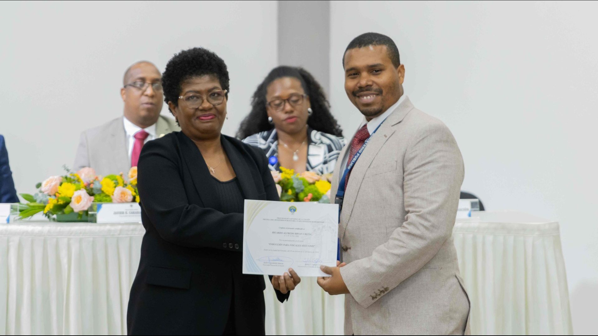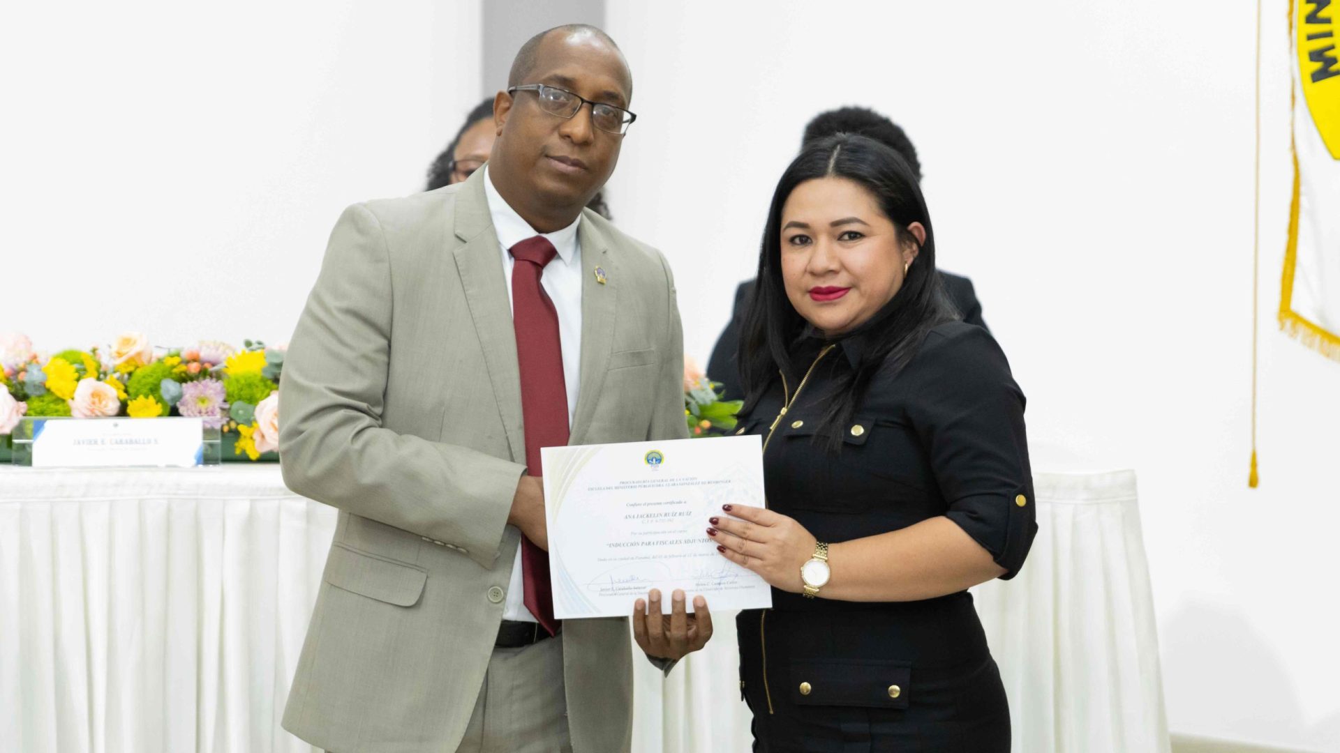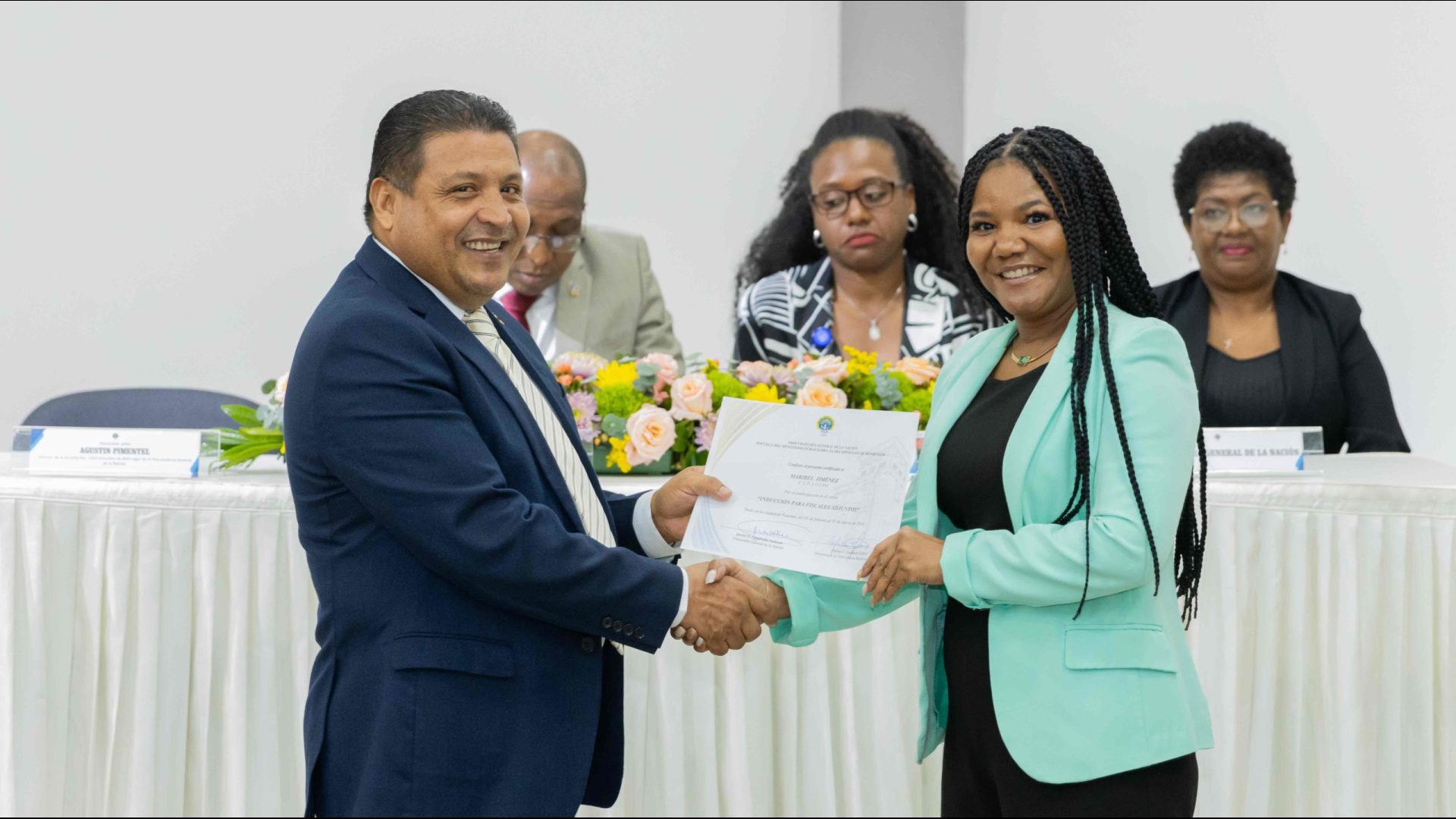 El Procurador General de la Nación, Javier Enrique Caraballo Salazar, destacó que estos fiscales han sido nombrados luego de pasar por un riguroso periodo de selección, luego de llegar a la institución mediante un concurso abierto donde se les sometió a diversos exámenes de conocimiento, se les dio capacitaciones, un curso de inducción, una pasantía y un examen de inducción y reciben su certificado que los acredita como idóneos para ser Fiscales Adjuntos y les reconoce una plaza de trabajo a los que pasaron con mejor puntaje.