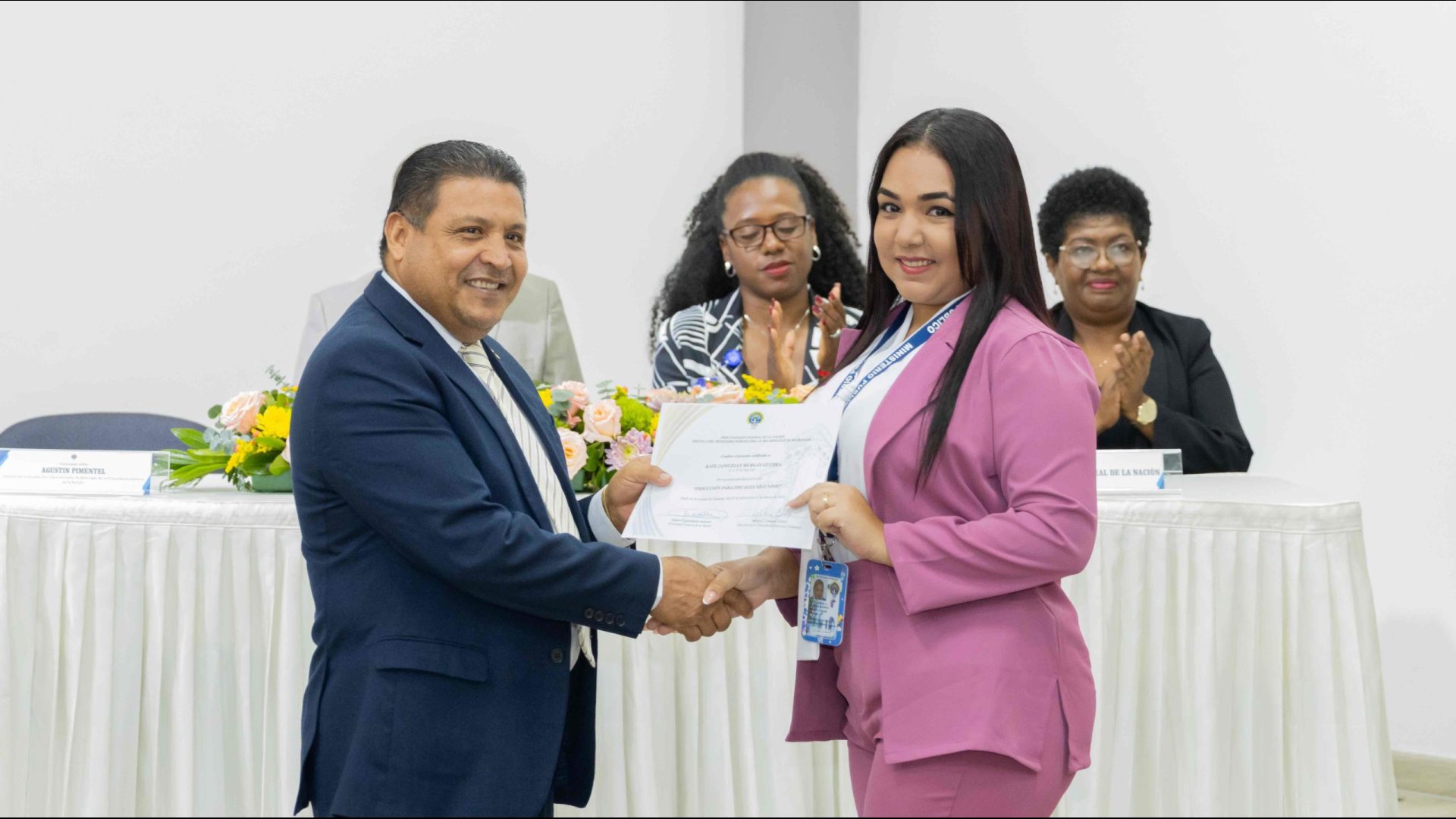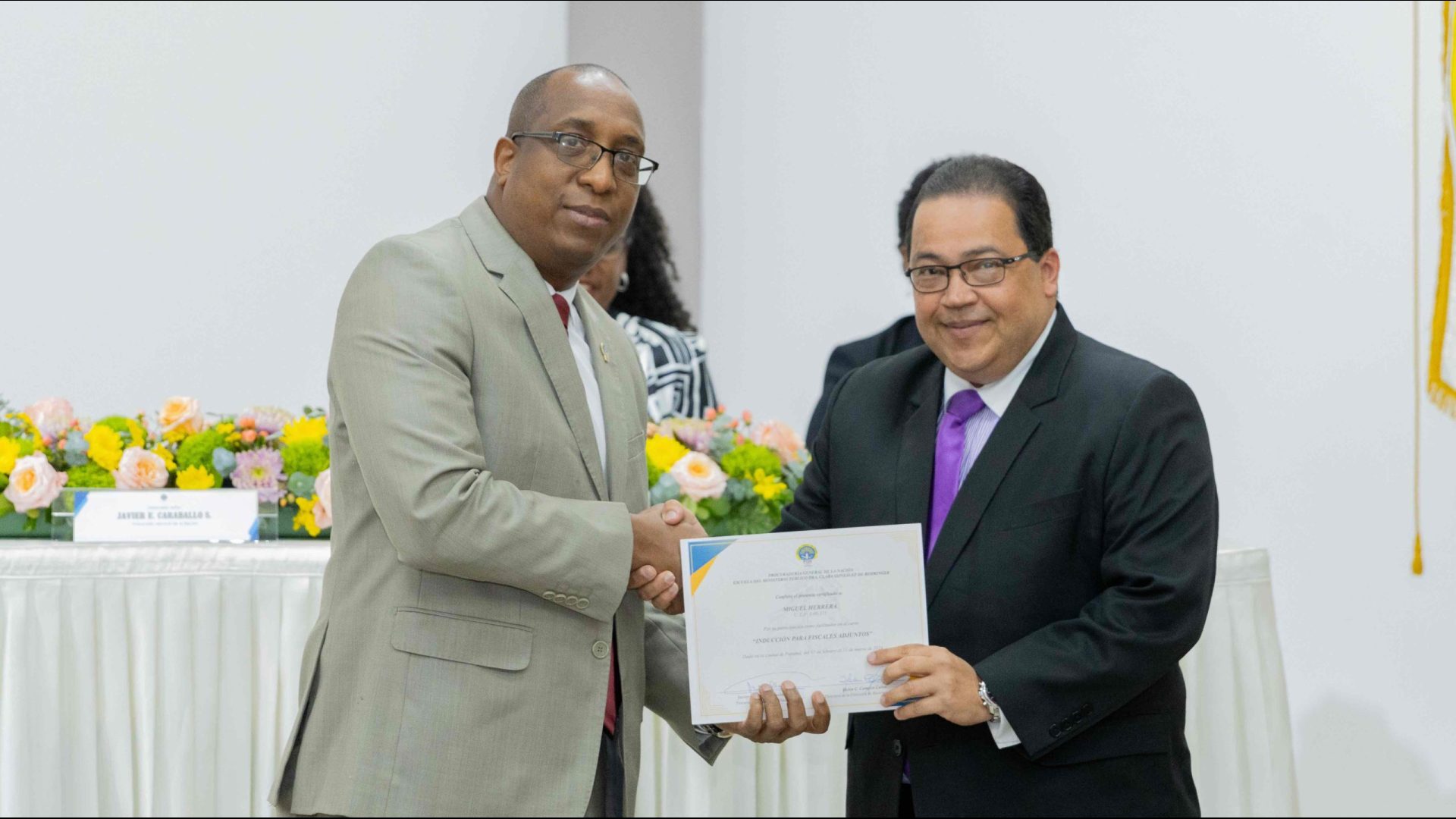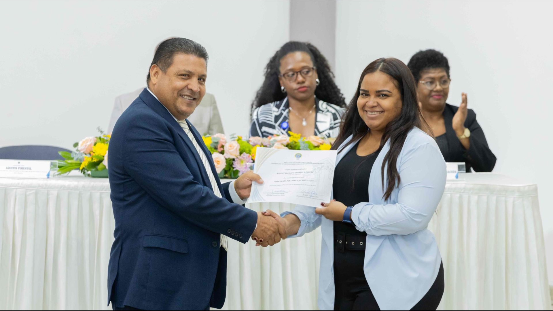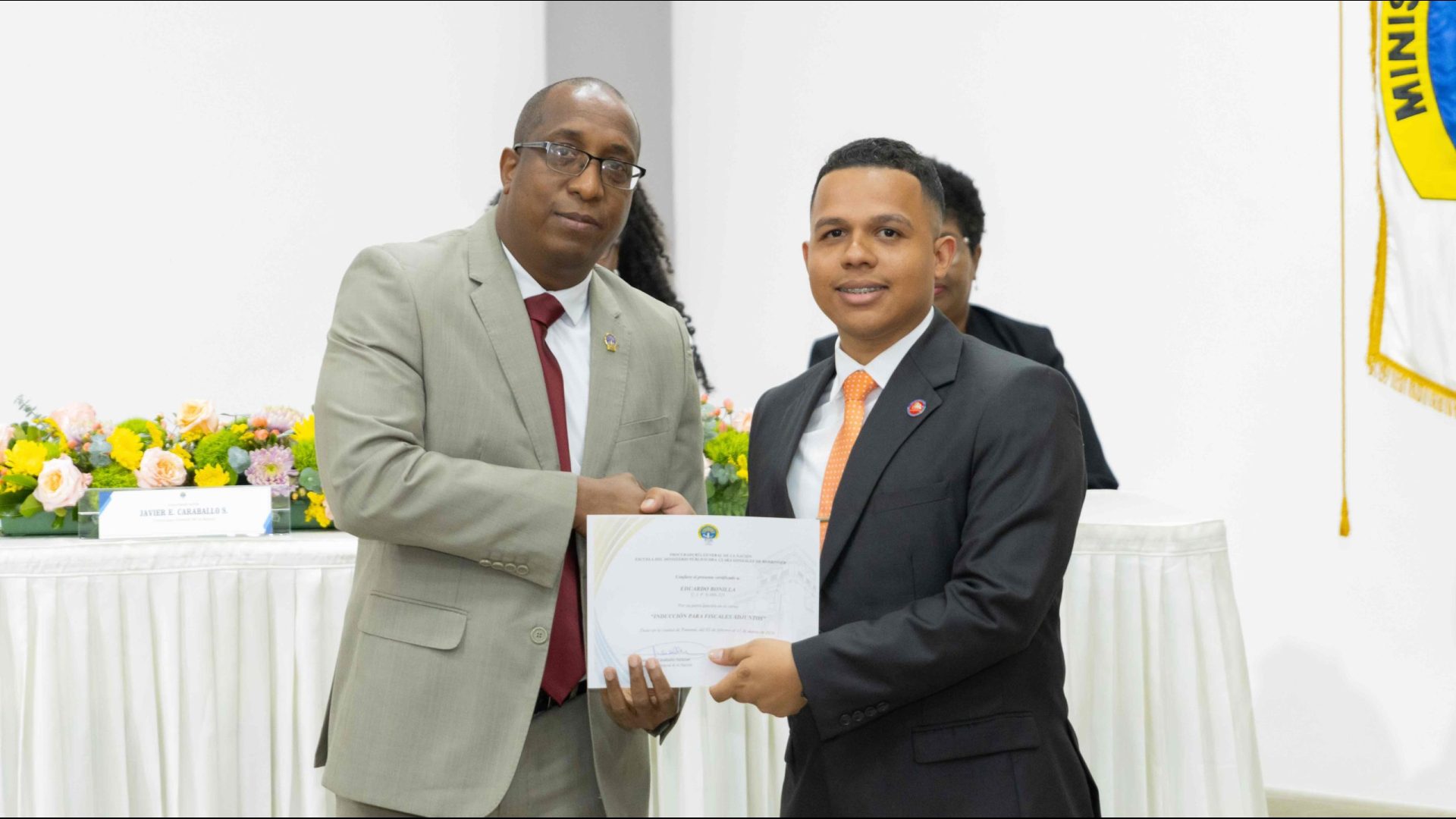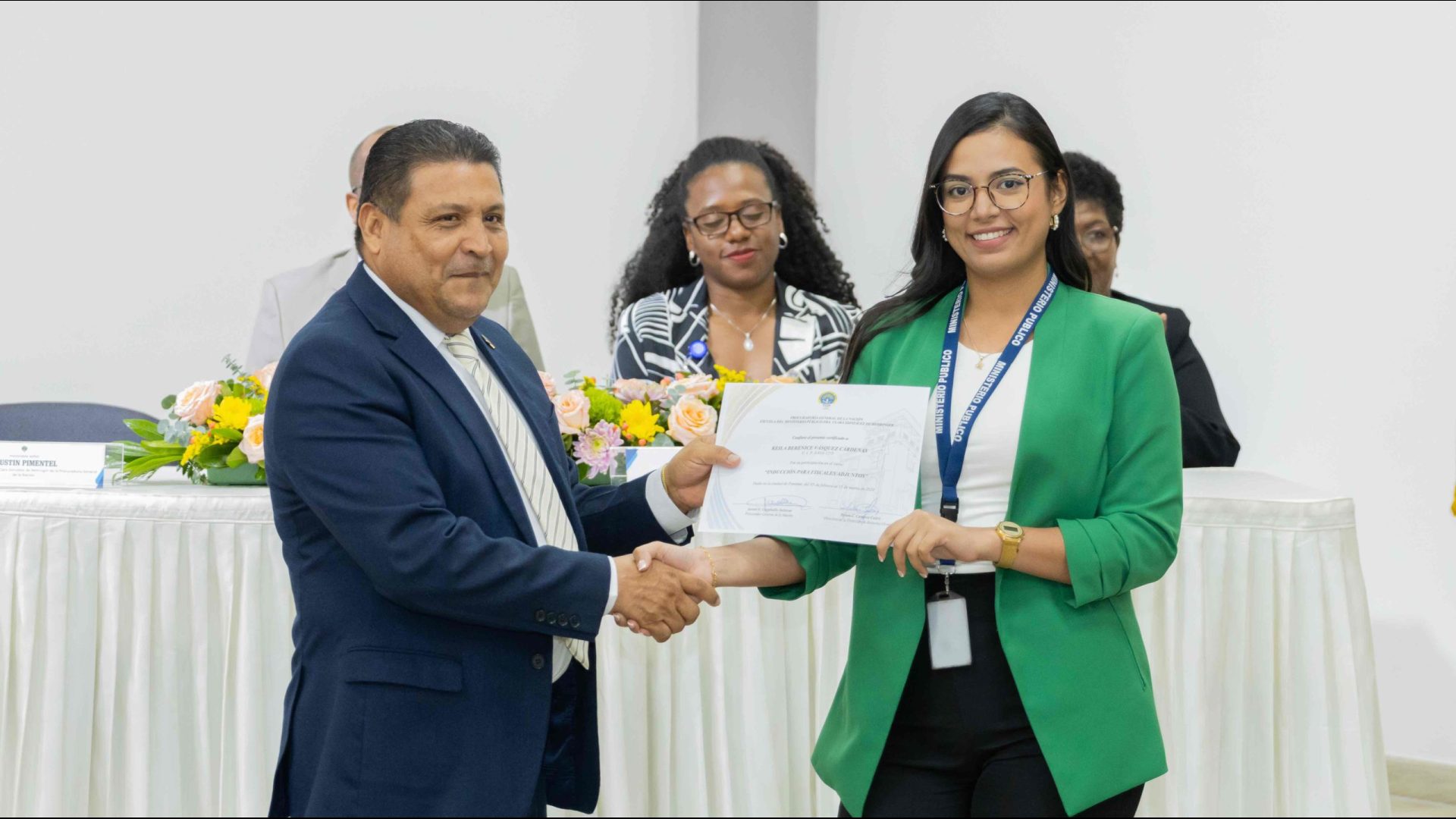 El Procurador General de la Nación, Javier Enrique Caraballo Salazar, destacó que estos fiscales han sido nombrados luego de pasar por un riguroso periodo de selección, luego de llegar a la institución mediante un concurso abierto donde se les sometió a diversos exámenes de conocimiento, se les dio capacitaciones, un curso de inducción, una pasantía y un examen de inducción y reciben su certificado que los acredita como idóneos para ser Fiscales Adjuntos y les reconoce una plaza de trabajo a los que pasaron con mejor puntaje.