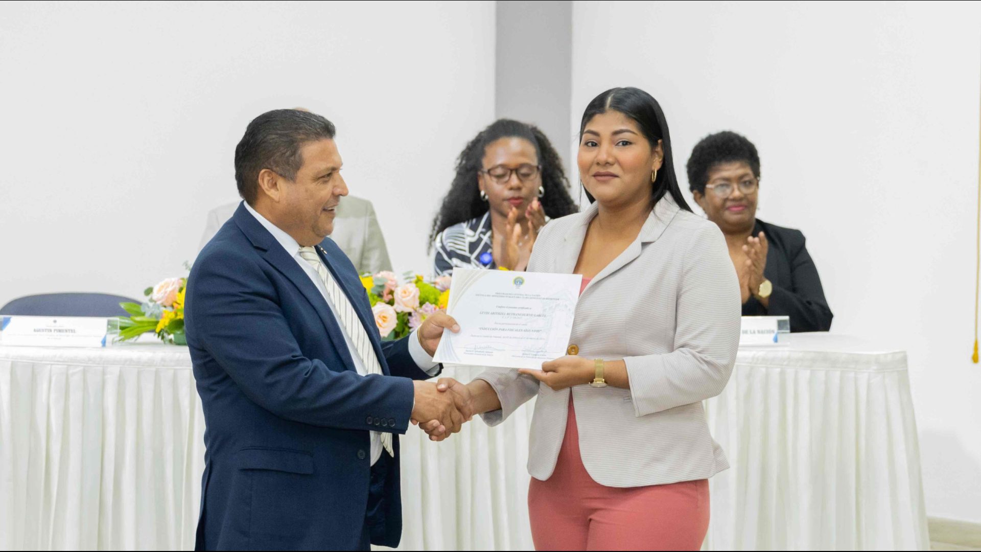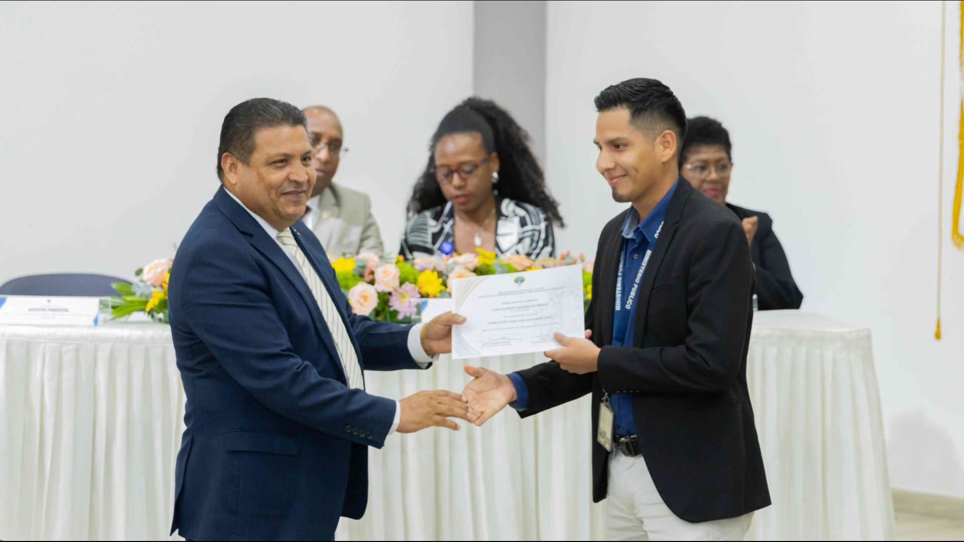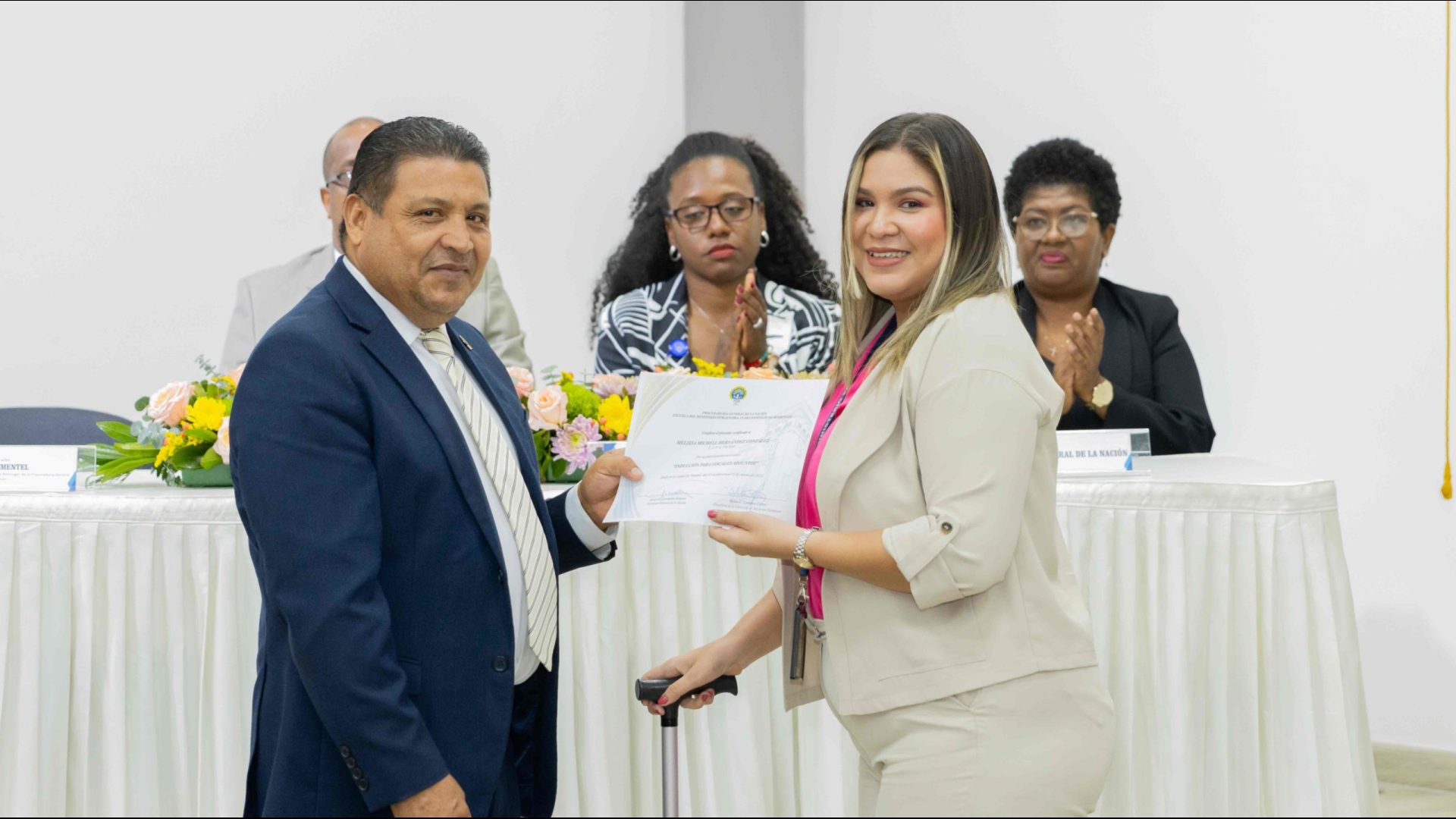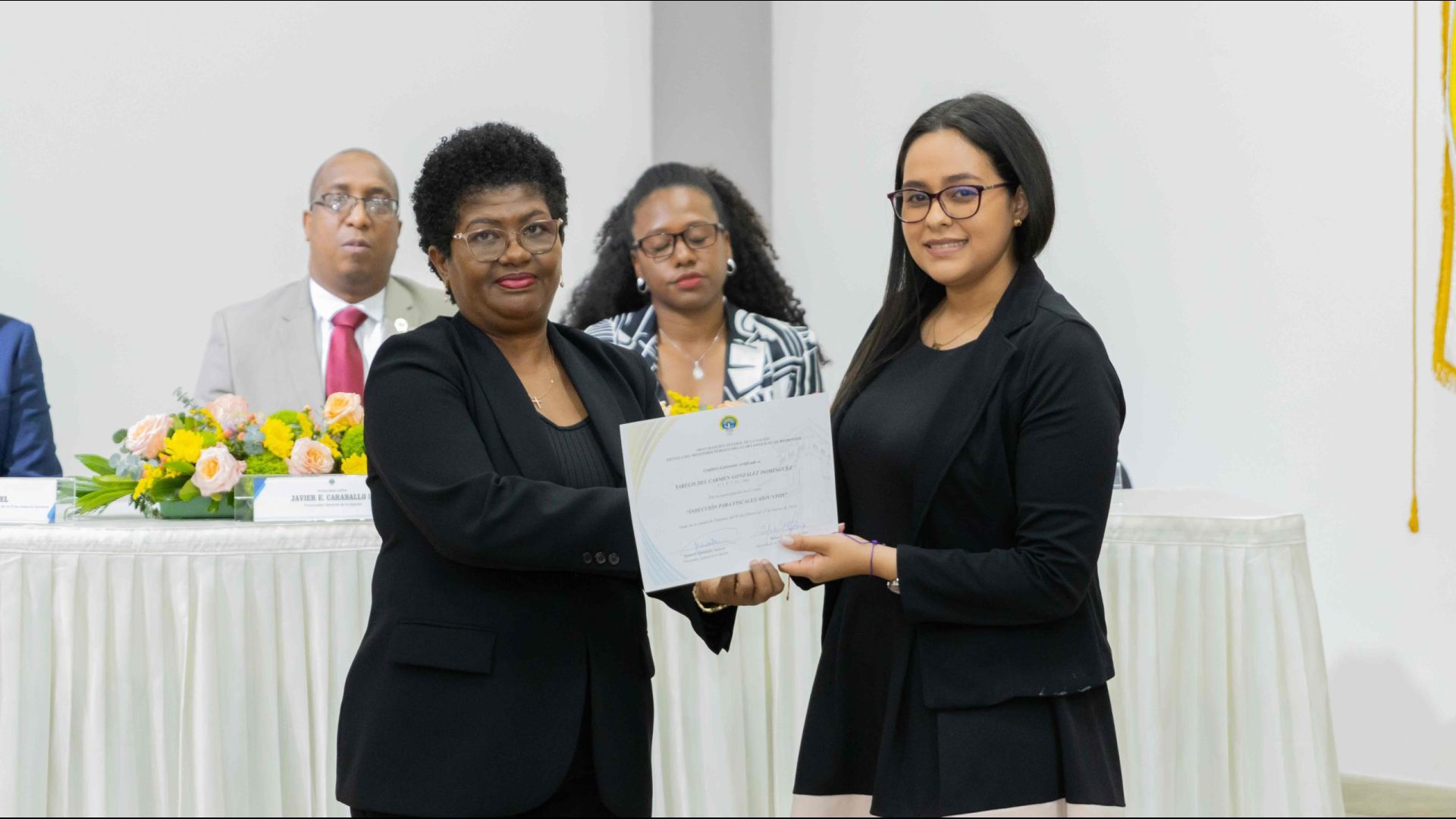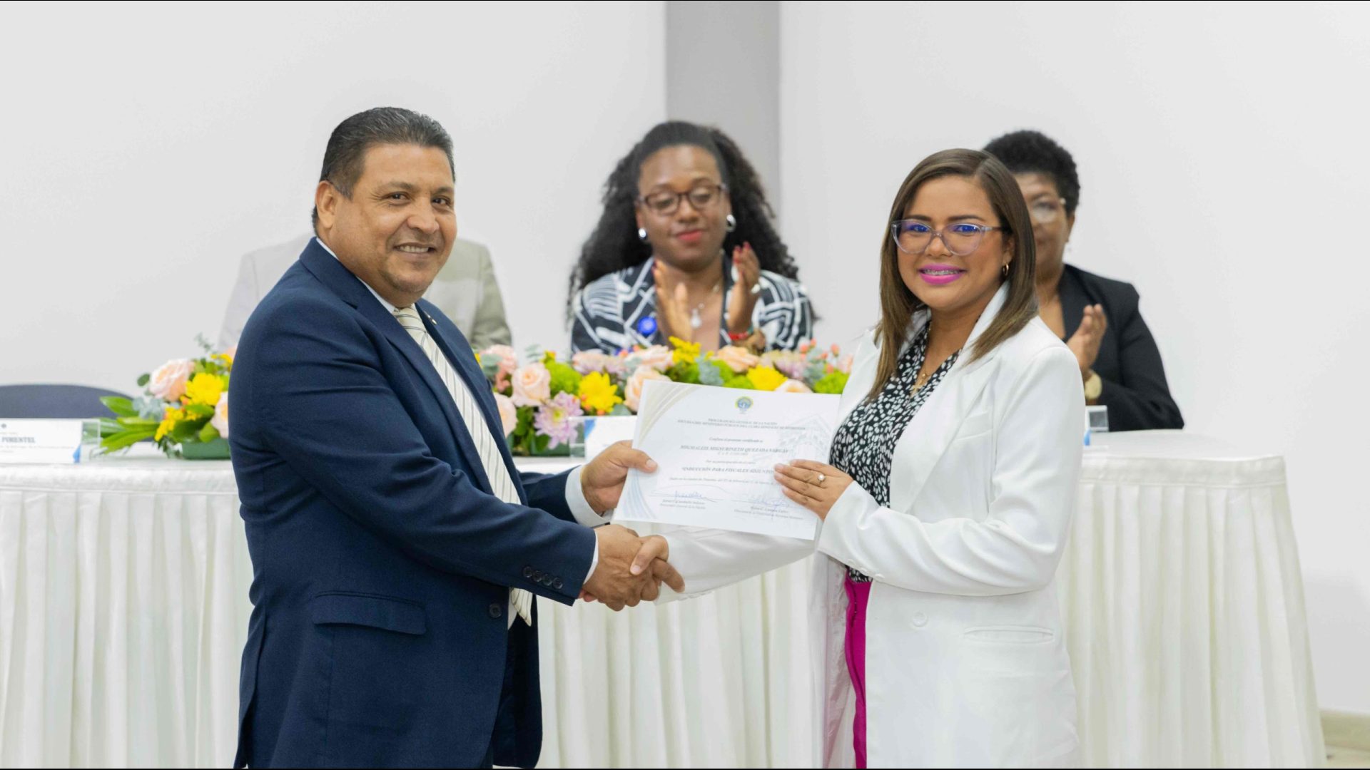 El Procurador General de la Nación, Javier Enrique Caraballo Salazar, destacó que estos fiscales han sido nombrados luego de pasar por un riguroso periodo de selección, luego de llegar a la institución mediante un concurso abierto donde se les sometió a diversos exámenes de conocimiento, se les dio capacitaciones, un curso de inducción, una pasantía y un examen de inducción y reciben su certificado que los acredita como idóneos para ser Fiscales Adjuntos y les reconoce una plaza de trabajo a los que pasaron con mejor puntaje.