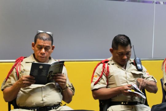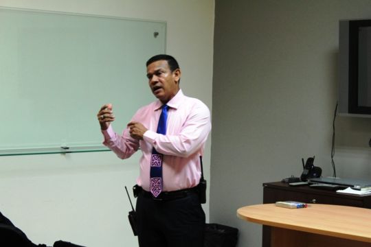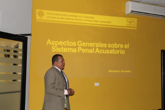 La Oficina de Implementación del Sistema Penal Acusatorio (OISPA) del Ministerio Público continúa su labor académica, dando a conocer las bondades del nuevo sistema de justicia que rige ahora en la República de Panamá. Esta vez correspondió al fiscal de circuito Ricardo González, miembro de la OISPA, dar a conocer las particularidades del SPA a miembros del Departamento de Seguridad de Albrook Mall.