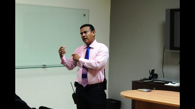 La Oficina de Implementación del Sistema Penal Acusatorio (OISPA) del Ministerio Público continúa su labor académica, dando a conocer las bondades del nuevo sistema de justicia que rige ahora en la República de Panamá. Esta vez correspondió al fiscal de circuito Ricardo González, miembro de la OISPA, dar a conocer las particularidades del SPA a miembros del Departamento de Seguridad de Albrook Mall.