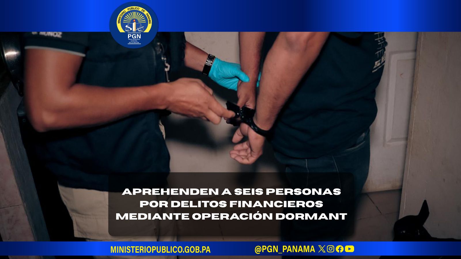La Sección de Delitos contra el Orden Económico de la Fiscalía Metropolitana en conjunto con la Dirección de Investigación Judicial, realizó la Operación Dormant en las provincias de Panamá y Panamá Oeste, dando con la aprehensión de 6 personas, investigadas por delitos financieros, blanqueo de capitales y el uso indebido de tarjeta de crédito.