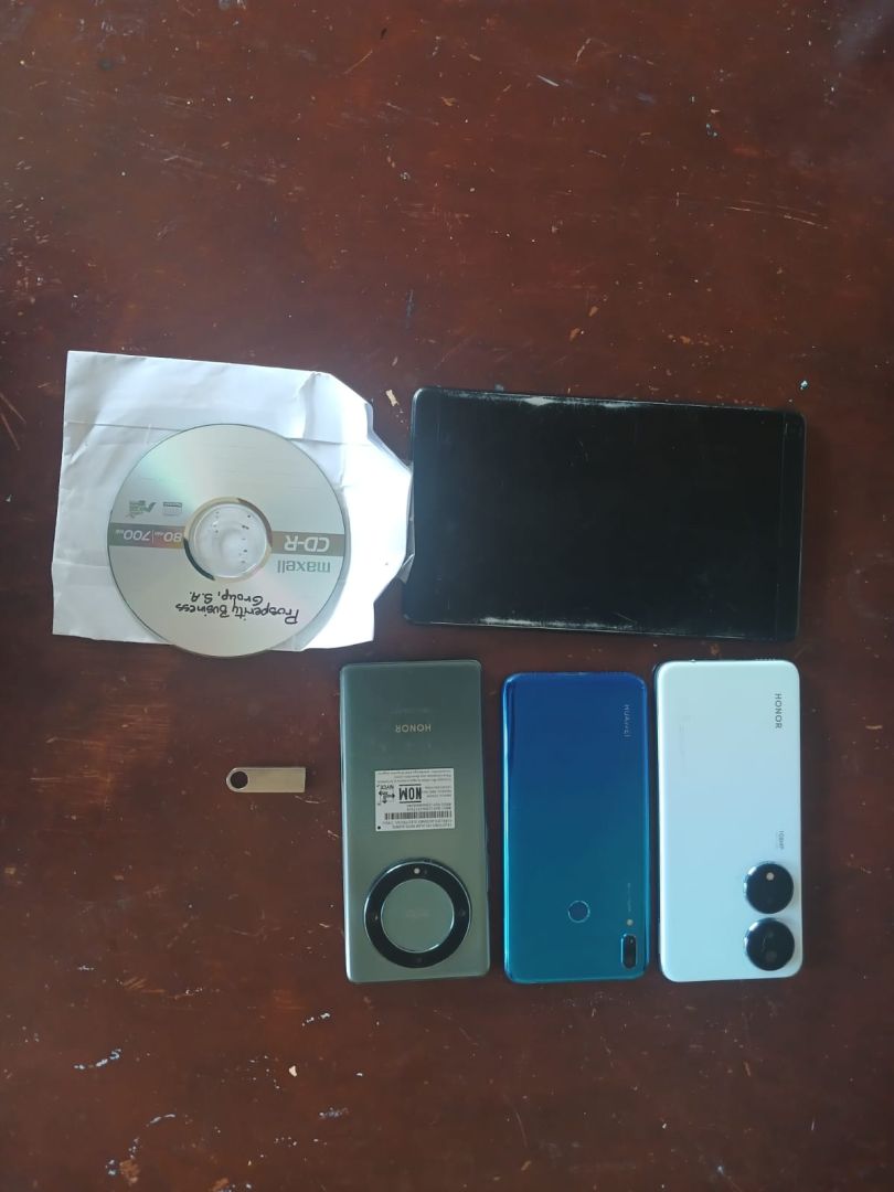 En las distintas diligencias realizadas se decomisaron equipos tecnológicos como: discos duros (externo e interno), dispositivos de almacenamiento (USB y tarjetas de memorias SD), discos compactos, computadoras (portátiles y de escritorio), tablets y teléfonos celulares.