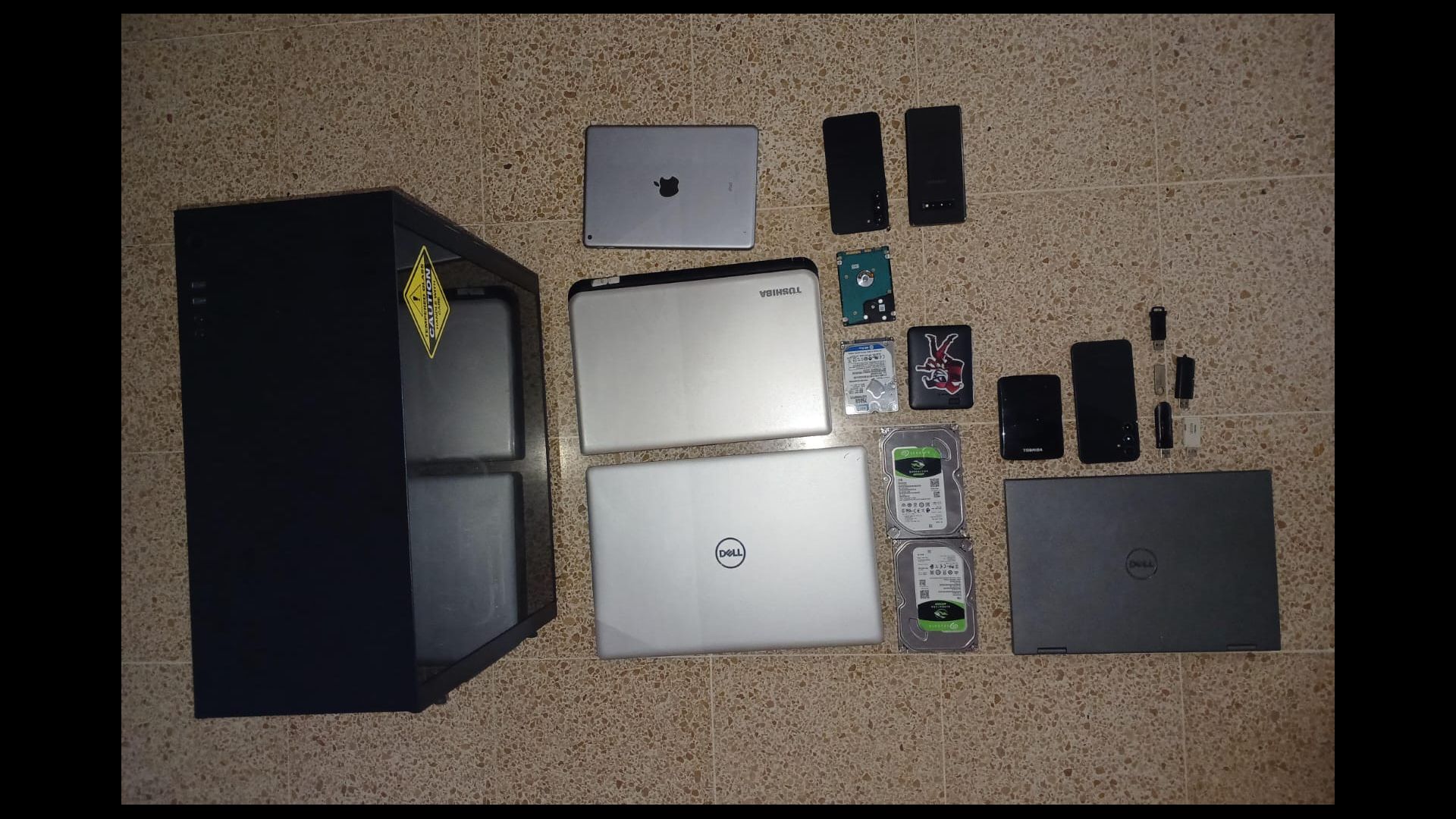 En las distintas diligencias realizadas se decomisaron equipos tecnológicos como: discos duros (externo e interno), dispositivos de almacenamiento (USB y tarjetas de memorias SD), discos compactos, computadoras (portátiles y de escritorio), tablets y teléfonos celulares.