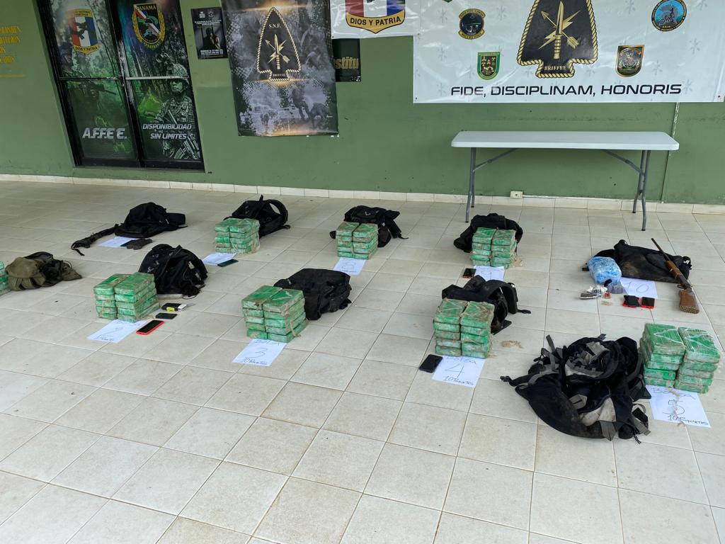 La Fiscalía Especializada en Delitos Relacionados con Drogas de la provincia de Darién en conjunto con el Servicio Nacional de Fronteras, (SENAFROT), mediante la campaña «Wana Jumarada», lograron el decomiso de 80 paquetes de presunta sustancia ilícita que se mantenían distribuidas en 10 mochilas y la aprehensión de una persona presuntamente vinculada al hecho registrado el 8 de julio de 2022, a 9 kilómetros de la frontera de Panamá y Colombia, en el cauce del río Tupiza.