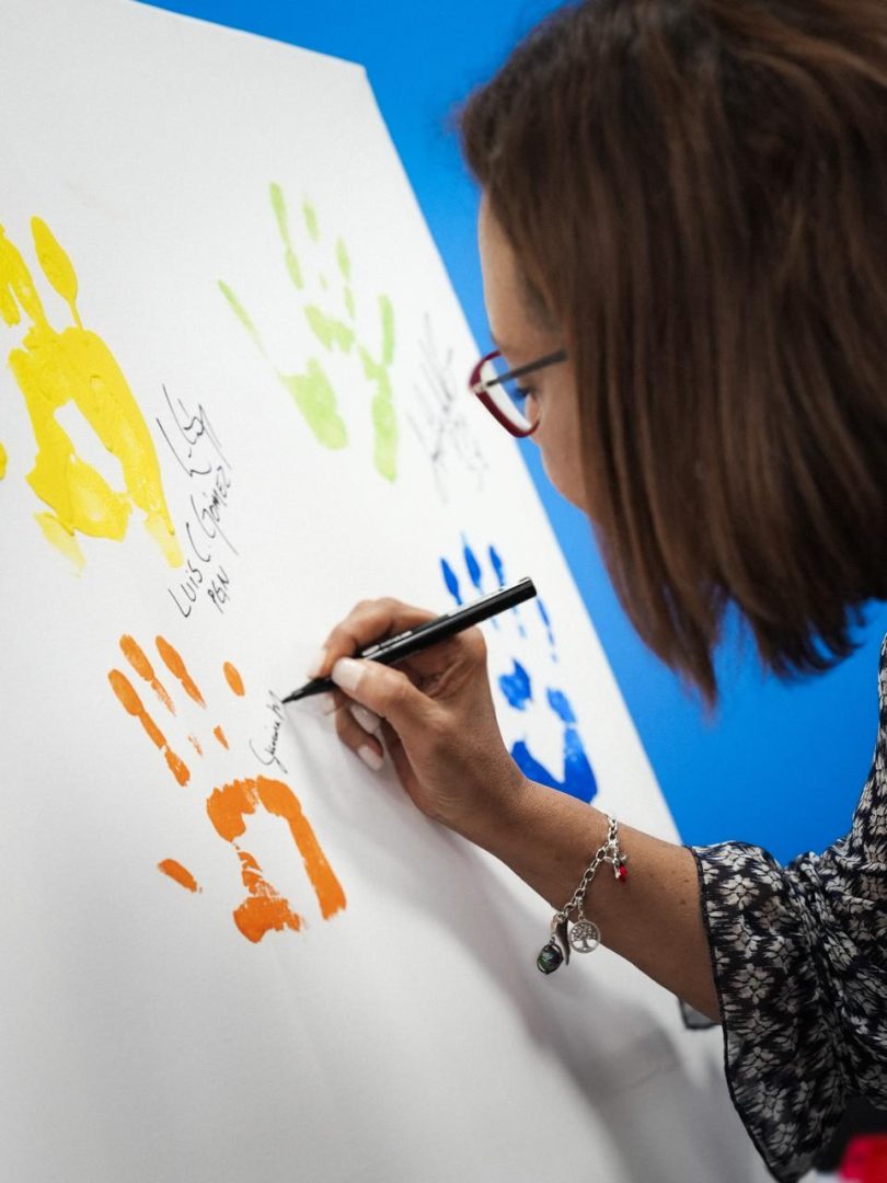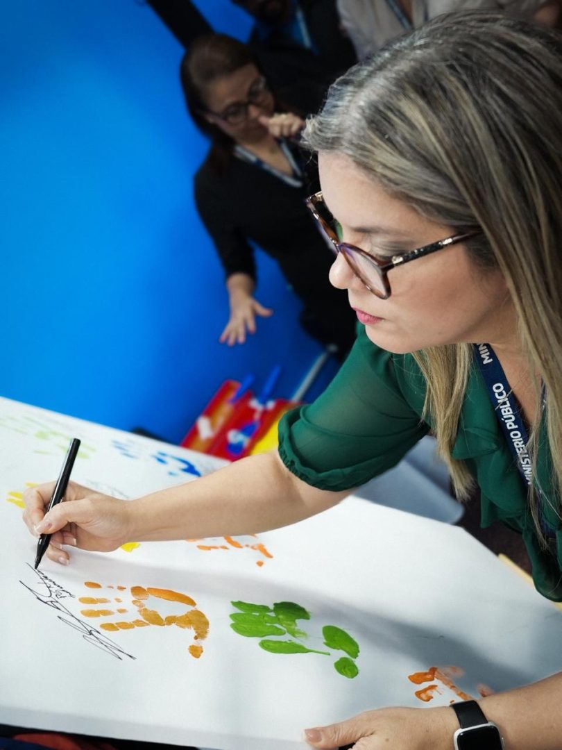 En tanto, el Procurador General de la Nación, plasmó en un lienzo su huella como muestra del compromiso institucional de promover y reconocer los derechos humanos de las personas con discapacidad visual, al goce y disfrute pleno en equiparación e igualdad de oportunidades.