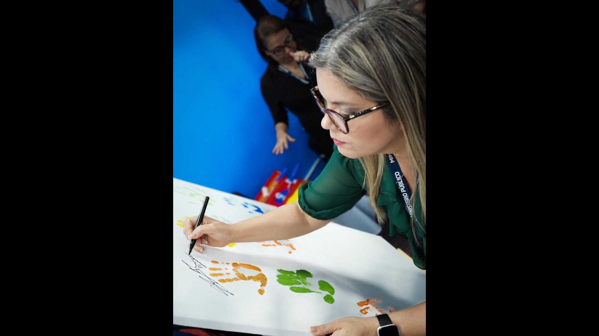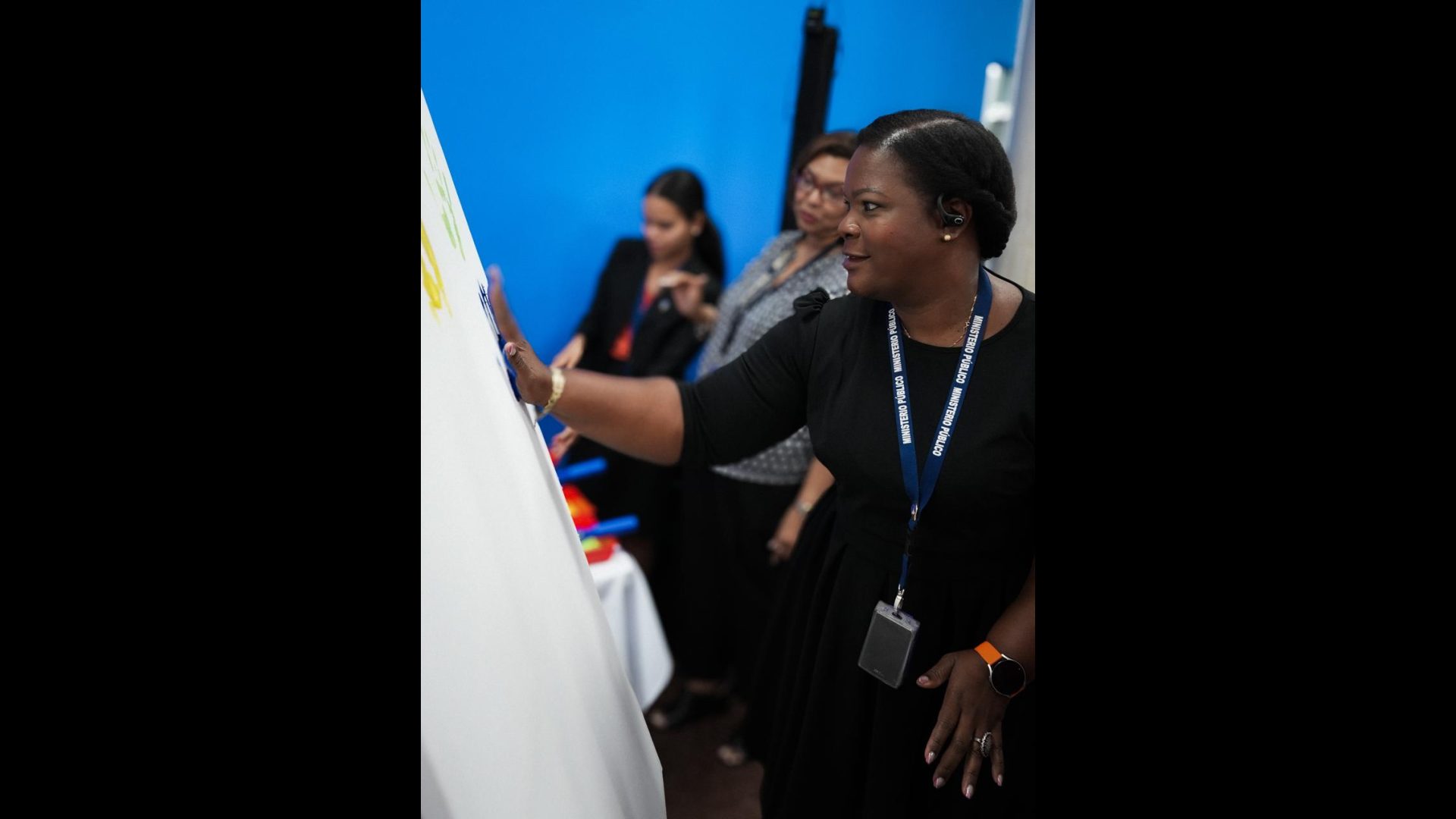 En tanto, el Procurador General de la Nación, plasmó en un lienzo su huella como muestra del compromiso institucional de promover y reconocer los derechos humanos de las personas con discapacidad visual, al goce y disfrute pleno en equiparación e igualdad de oportunidades.