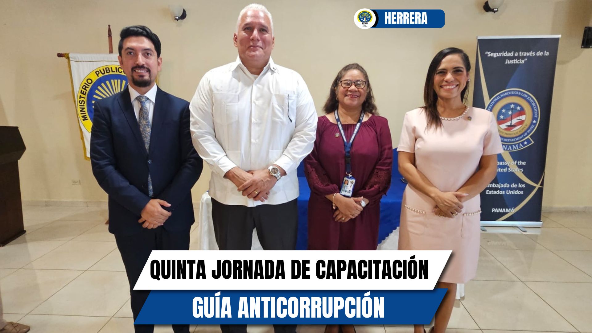 La Procuraduría General de la Nación dio inicio este 20 de mayo de 2024 a la quinta jornada de capacitación de la Guía Anticorrupción realizada en la ciudad de Chitré, provincia de Herrera, dirigida a fiscales de provincias centrales, funcionarios de la Dirección de Investigación Judicial, Órgano Judicial y Contraloría General de la República, que forma parte del diseño de buenas prácticas dispuestas en ejercicio de los compromisos interinstitucionales suscritos por el Memorando de Entendimiento interinstitucional entre la Procuraduría General de la Nación, Ministerio de Seguridad Pública y la Autoridad Nacional de Transparencia y Acceso a la Información, con el apoyo técnico de la Embajada de los Estados Unidos de América, a través del programa anticorrupción de la Sección Antinarcóticos Internacionales y Aplicación de la Ley (INL).
