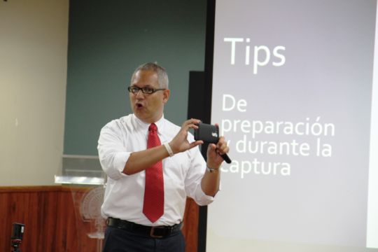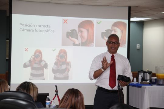 En esta jornada que se realizó la tarde del pasado 17 de abril, en el salón de conferencias del Ministerio Público, el especialista en fotografía, Miguel Villarreal capacitó en el arte de captar gráficas con impactos noticiosos, siendo algunas de las áreas abordadas: El uso de la cámara profesional, Los mejores enfoques para la fotografías, Cómo aprovechar y obtener los mejores ángulos fotográficos a través de aparatos móviles inteligentes.