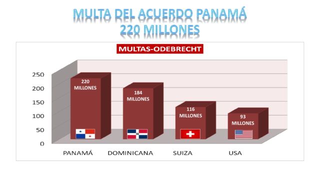 Con el acuerdo de COLABORACIÓN EFICAZ, la empresa se compromete al pago de una sanción económica por el orden de los doscientos veinte millones de dólares americanos (US$220,000,000.00),previo informe técnico de la Contraloría General de la República, a suministrar toda la información relacionada con Panamá, que cualquiera de sus empleados, dirigentes o terceros contratados conozca, así como los hechos relacionados con nuestro país ya informados al Departamento de Justicia de los Estados Unidos de América y al Ministerio Público de la República Federativa de Brasil.
