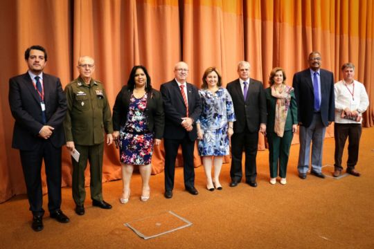 La Procuradora General de la Nación, Kenia Porcell, participó en el acto en su condición de Presidenta de la Asociación Iberoamericana de Ministerios Públicos AIAMP acompañando a su homólogo, Darío Delgado Cura, Fiscal General de la República de Cuba. Estuvieron presentes también el Presidente del Tribunal Supremo Popular de la República de Cuba, Dr. Rubén Remigio Ferró, la Ministra de Justicia Cuba, María Esther Reus, el Secretario General de la COMJIB e IberRed, Arkel Benitez, entre otras autoridades y miembros de la comunidad jurídica cubana.