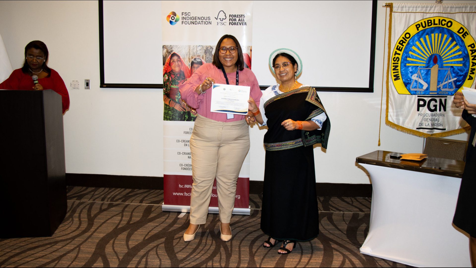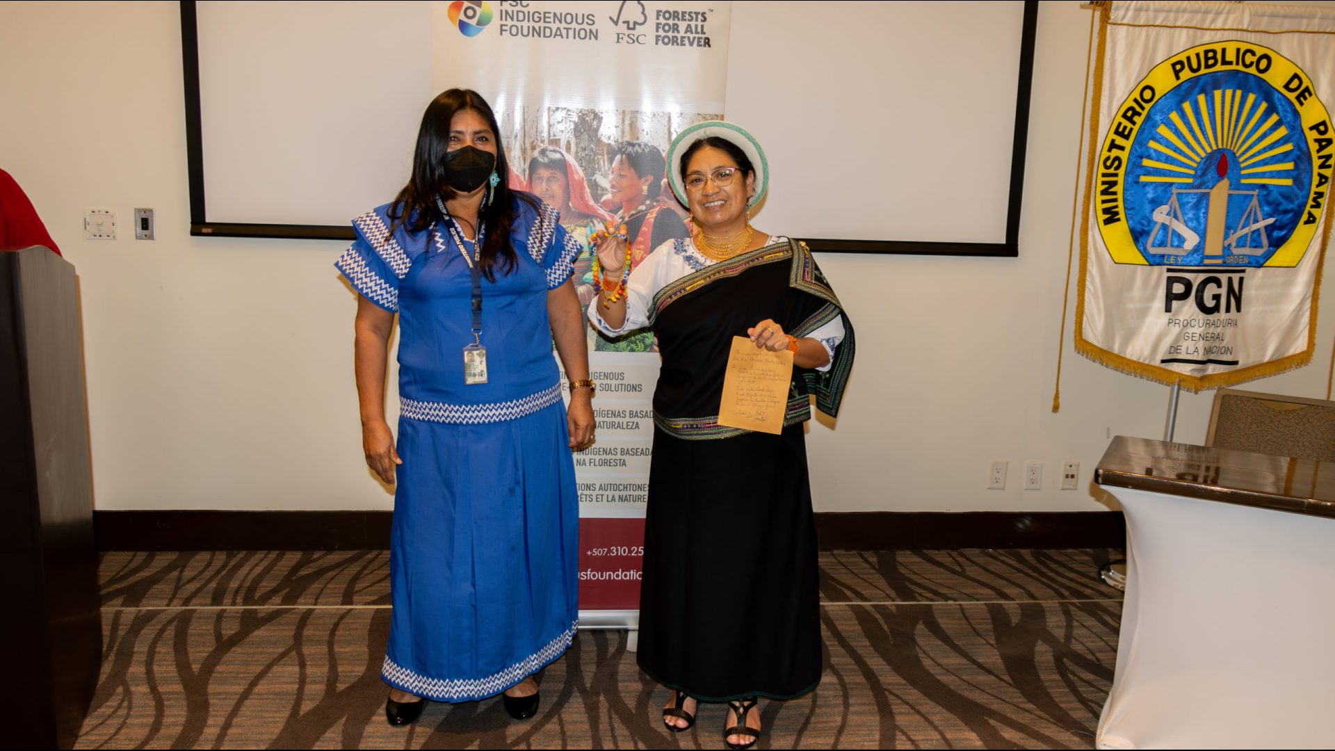 También se hizo entrega a la expositora internacional de collares confeccionados por manos de originarios panameños de la etnia Emberá Wounaan y Ngäbe Buglé.