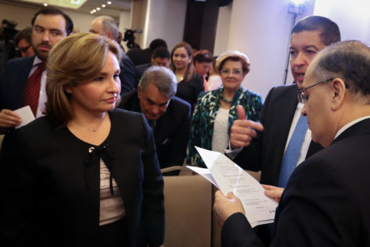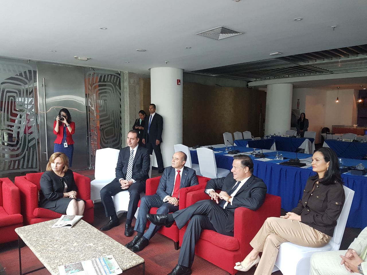 El presidente de la CorteIDH y Juez, Roberto F. Caldas, el Vicepresidente de la CorteIDH, Eduardo Ferrer Mac-Gregor Poisot sostuvieron un encuentro protocolar que contó con la participación del Presidente de la República, Juan Carlos Varela, la Canciller y Vicepresidenta de la República, Isabel de Saint Malo de Alvarado; la Procuradora General de la Nación, Kenia I. Porcell D.; el Procurador de la Administración, Rigoberto González y la ministra de Gobierno, María Luisa Romero, donde conversaron sobre temas generales relativos a los derechos humanos en el país.