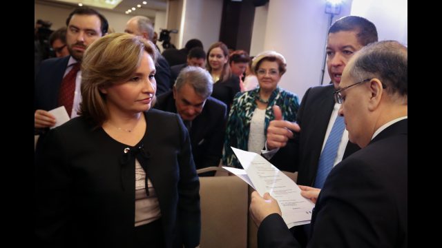 El presidente de la CorteIDH y Juez, Roberto F. Caldas, el Vicepresidente de la CorteIDH, Eduardo Ferrer Mac-Gregor Poisot sostuvieron un encuentro protocolar que contó con la participación del Presidente de la República, Juan Carlos Varela, la Canciller y Vicepresidenta de la República, Isabel de Saint Malo de Alvarado; la Procuradora General de la Nación, Kenia I. Porcell D.; el Procurador de la Administración, Rigoberto González y la ministra de Gobierno, María Luisa Romero, donde conversaron sobre temas generales relativos a los derechos humanos en el país.