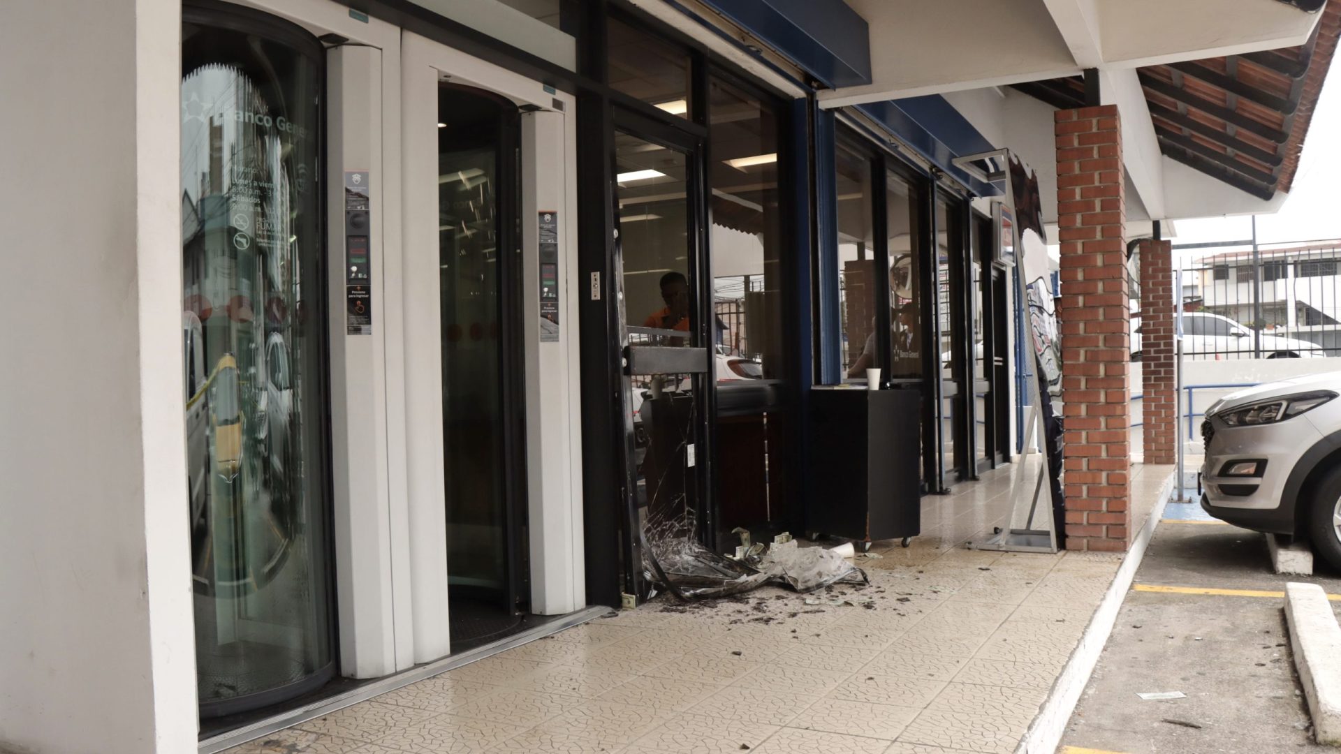 Todo sucedió cuando cuatro sujetos llegaron al Banco General, en un vehículo taxi, dos ingresaron a la entidad bancaria y se apoderan de las cajas y el dinero (B/.28,500.00 en efectivo), en tanto los otros dos se quedaron en la parte de afuera y despojan del arma de fuego de fuego al seguridad y además rompen la puerta por donde salen sus compañeros.