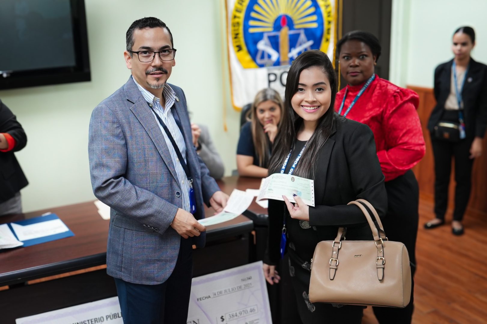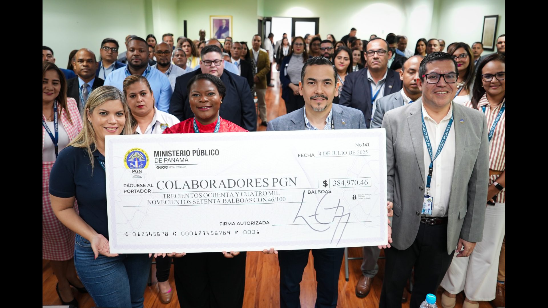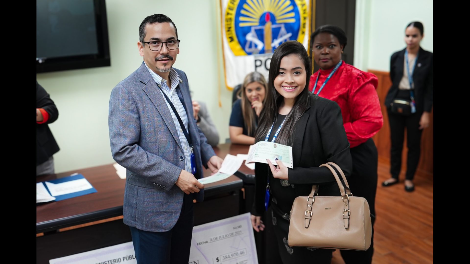 Reconociendo el arduo trabajo que realiza los funcionarios del Ministerio Público, el Procurador General de la Nación, Luis Carlos Gómez hizo entrega formal de cheques de compensaciones a funcionarios activos de la Procuraduría General de la Nación, los cuales con esmero y dedicación han realizado su trabajo de manera comprometida y eficaz.
