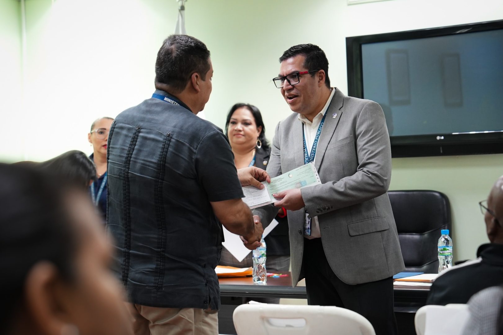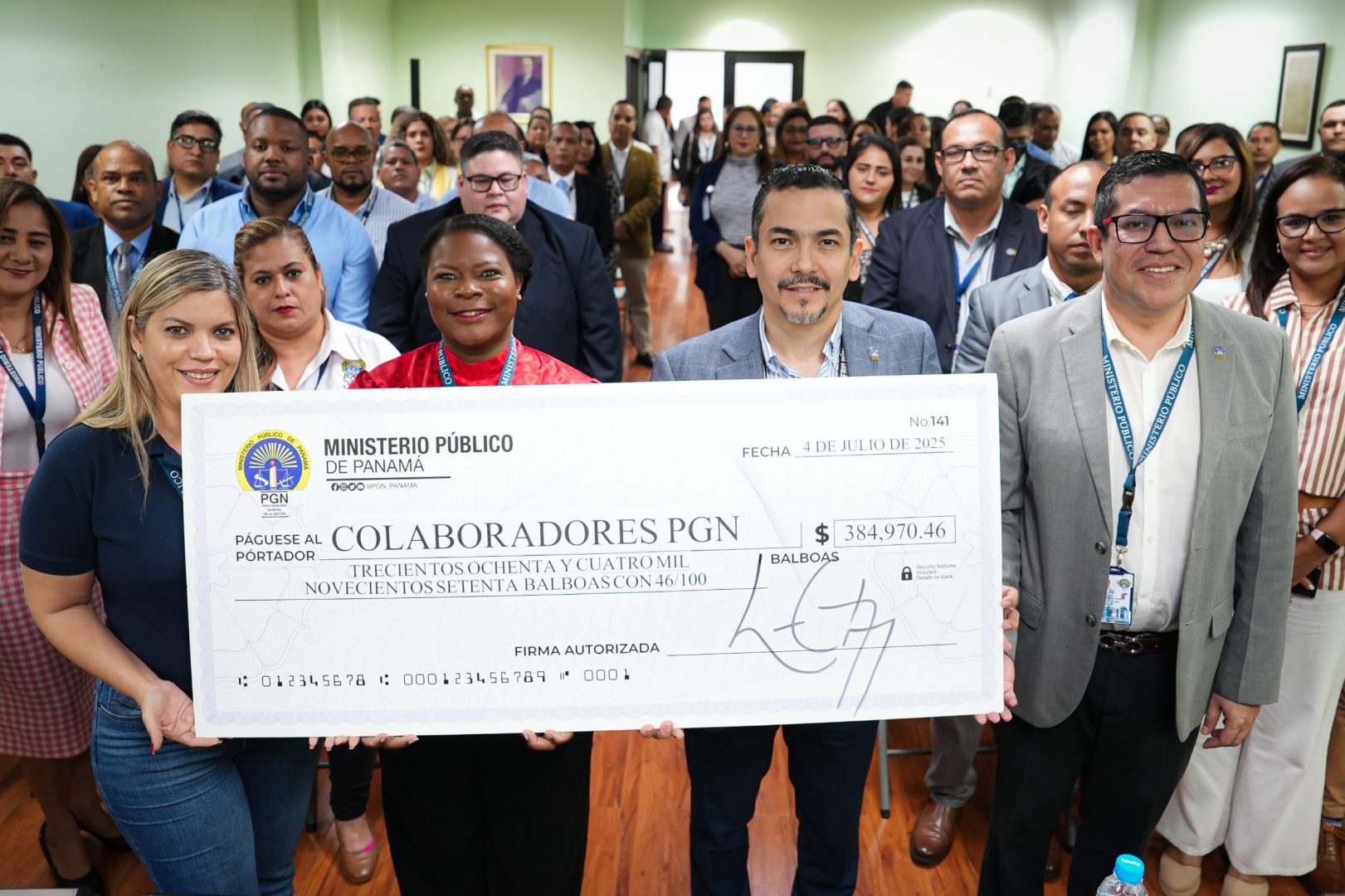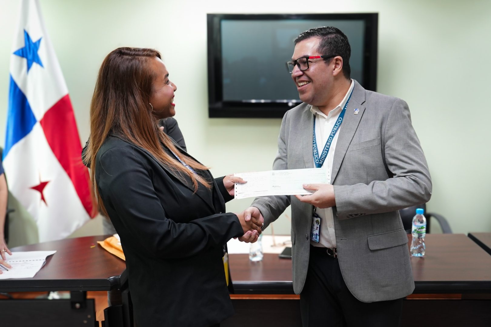 Reconociendo el arduo trabajo que realiza los funcionarios del Ministerio Público, el Procurador General de la Nación, Luis Carlos Gómez hizo entrega formal de cheques de compensaciones a funcionarios activos de la Procuraduría General de la Nación, los cuales con esmero y dedicación han realizado su trabajo de manera comprometida y eficaz.