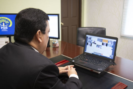 El Procurador General de la Nación, Eduardo Ulloa Miranda, participó en la apertura del Seminario Regional sobre Blanqueo de Capitales organizado por la Administración para el control de la Droga de Estados Unidos (DEA), en la mañana de este martes, 21 de julio de 2020.