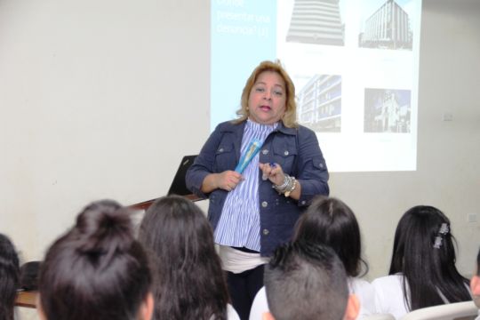 Tras la charla, la fiscal Gómez respondió algunas dudas que les quedaron a varios estudiantes. Previamente, durante su charla, la Fiscal le pidió al grupo documentarse más sobre el SPA y leer el cuadernillo de las “100 preguntas” que se les entregó.