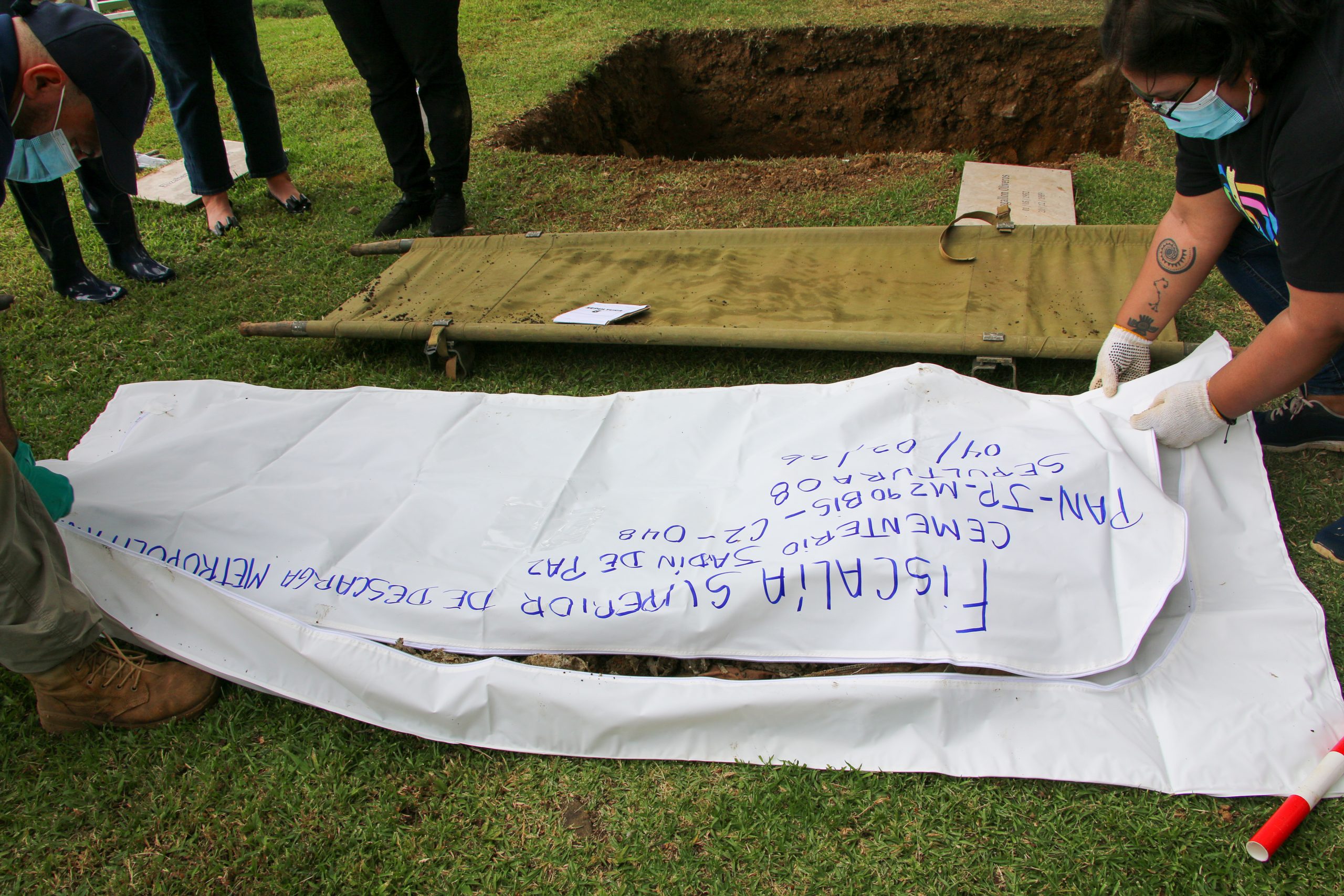 Guerra resaltó que la finalidad de estas exhumaciones y de los exámenes es poder identificar a las víctimas que fueron inhumadas, porque dentro de los expedientes que han sido reabiertos, a solicitud de los familiares; se encuentran en el Jardín de paz restos sepultados que no han sido identificados.
