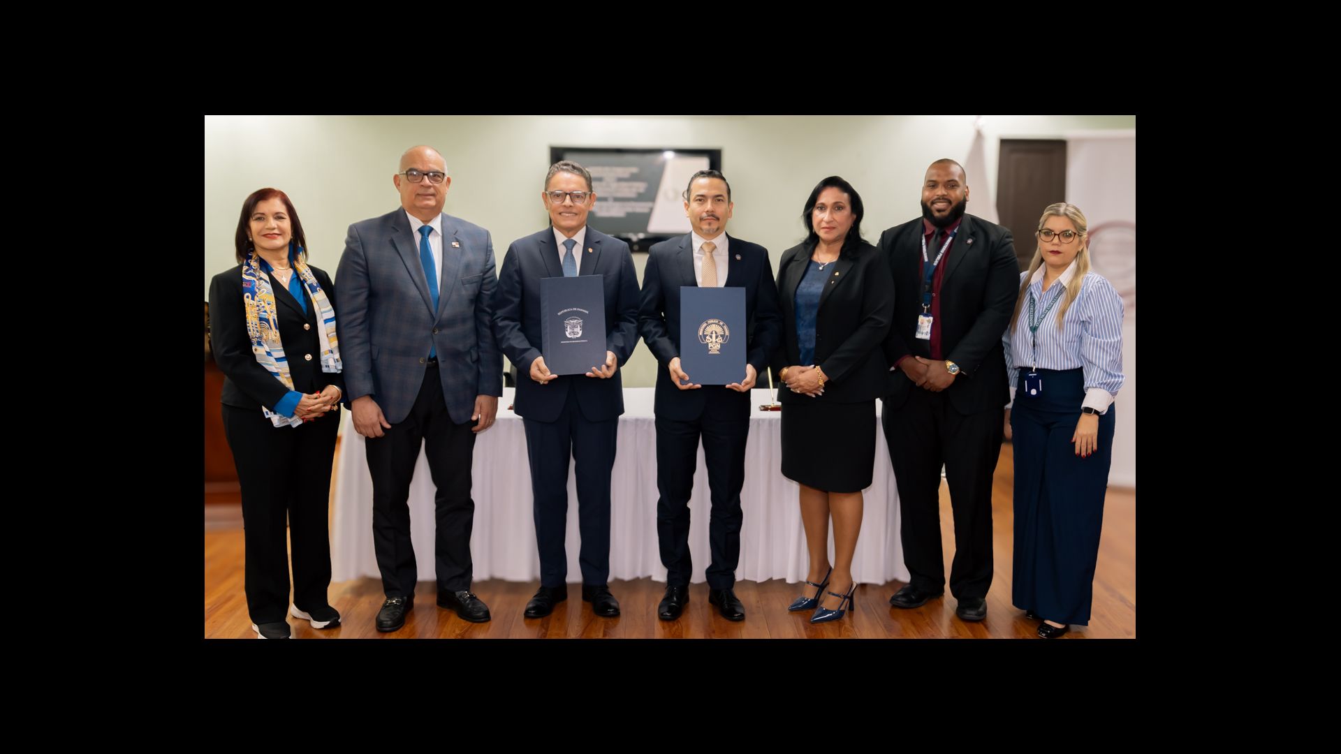 En esta firma de convenio estuvieron presentes por parte de la Procuraduría General de la Nación, la Subsecretaria General, Anilú Batista; el Secretario Ejecutivo de la CONAPREDES, Armando Prado; la Fiscal Superior Janeth Rovetto de la Sección de Delitos contra la Libertad e Integridad Sexual; Grisell Mojica, Fiscal Superior de Asuntos Legales; la Licenciada Yariela Fuentes, Asistente del Procurador y la licenciada Golda González, del Centro de Estadísticas.