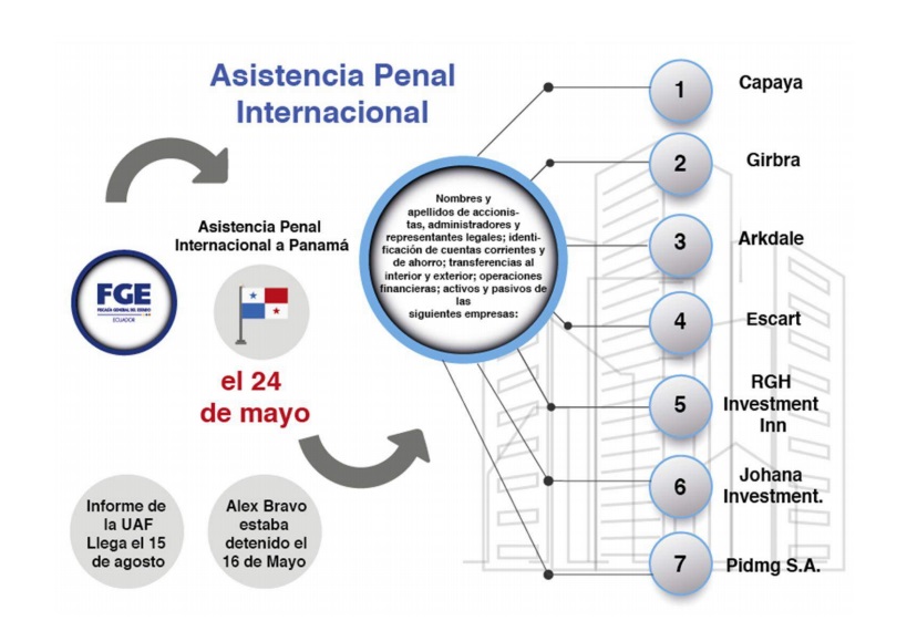 “También en Panamá logramos que se retenga alrededor de cuatro millones de dólares en cuentas corrientes para fortalecer las investigaciones, la Fiscalía Ecuatoriana solicitó la colaboración a seis países, Panamá, Estados Unidos, China, Reino Unido, Suiza y Bahamas”, informó el Fiscal General de Ecuador.