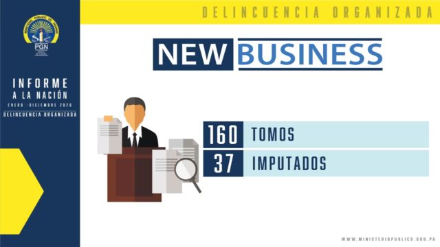 New Business: Se mantienen 37 personas imputadas, dentro de los delitos precedentes del Blanqueo de Capitales que se han investigado, se determinaron los delitos Contra la Administración Pública y Delitos Financieros. Está investigación mantiene 160 Tomos.