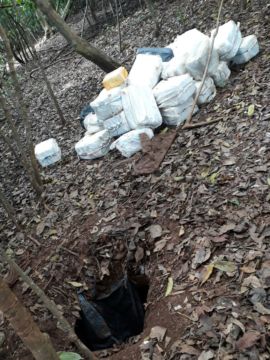 Los paquetes rectangulares se mantenían ocultos dentro de 61 sacos, los cuales estaban escondidos dentro de una caleta.
