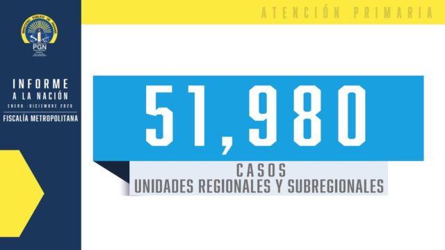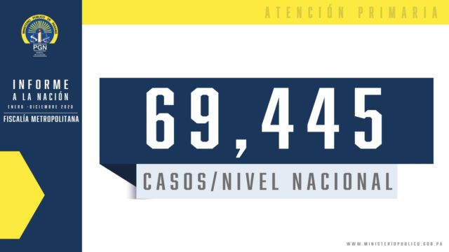 La Sección de Atención Primaria del área Metropolitana, a cargo del Fiscal Superior Julio Villarreal, atendió un total 17,465 casos de los 69,445 casos que se presentaron a nivel nacional (51,980 casos se registraron en las secciones de Atención Primaria de las Fiscalías Regionales y Subregionales).