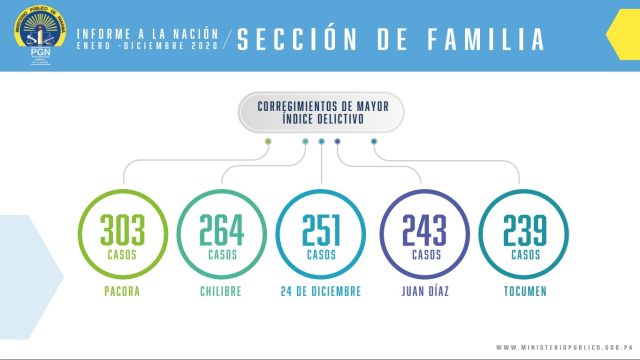 La Fiscal Superior, Katya Meléndez, presentó el resultado del trabajo del equipo de la Sección de Familia del área Metropolitana en el 2020, que atendió 3,933 denuncias durante el año 2020; de estas las más relevantes fueron por los delitos de Violencia Doméstica con 3,141; Maltrato al Niño o Adolescente con 620 casos y Maltrato al Adulto Mayor con 105. Se realizaron 2,529 audiencias con 604 imputaciones.
