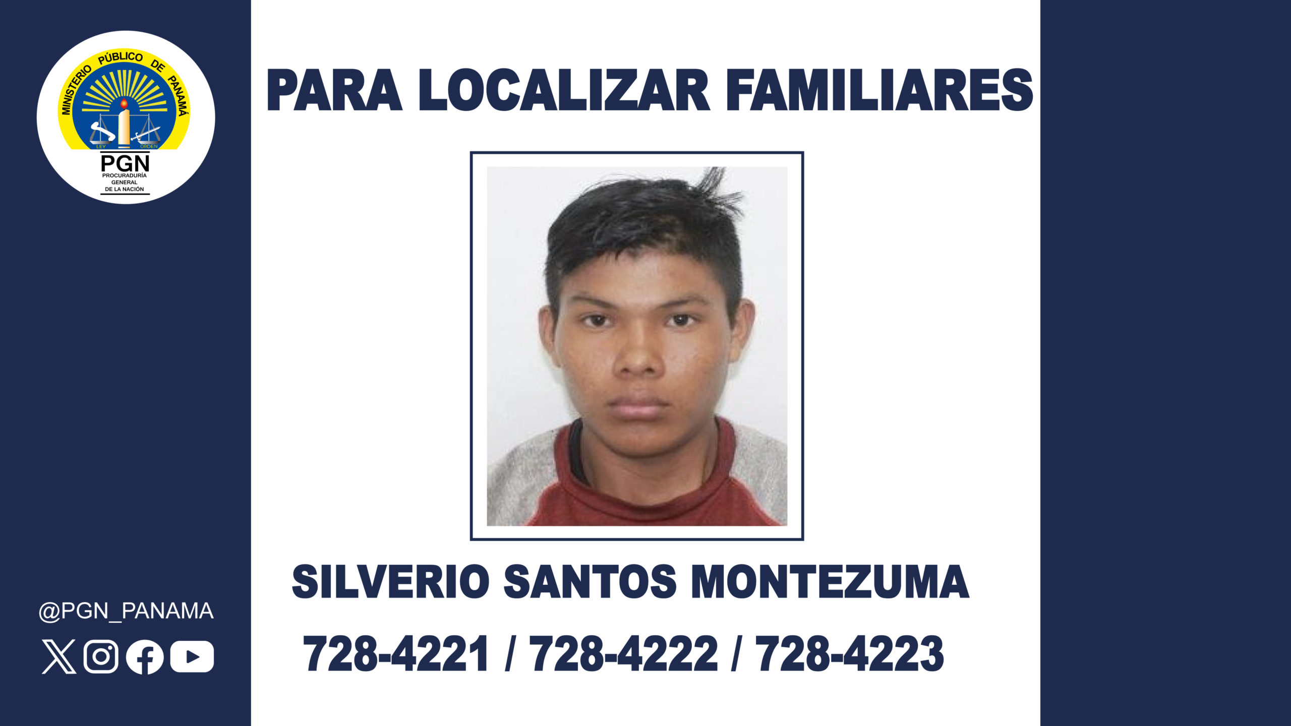 La Fiscalía Regional de Chiriquí, a través de la Sección de Homicidio y Femicidio, solicita colaboración para ubicar a familiares o a alguna persona que pueda brindar información referente al ciudadano Silverio Santos Montezuma de 28 años de edad.