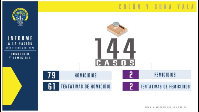 La Fiscalía Regional de la provincia de Colón y Guna Yala, a cargo del Fiscal Superior Edwin Juárez, dio a conocer los resultados de las acciones realizadas durante el año 2020 por este despacho de instrucción.