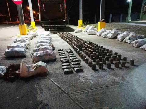 La mercancía ilícita oculta estaba camuflada con 48 sacos de ñame y otra gran cantidad de ñame suelto que se encontraba esparcido dentro del camión, conducido por un ciudadano panameño.