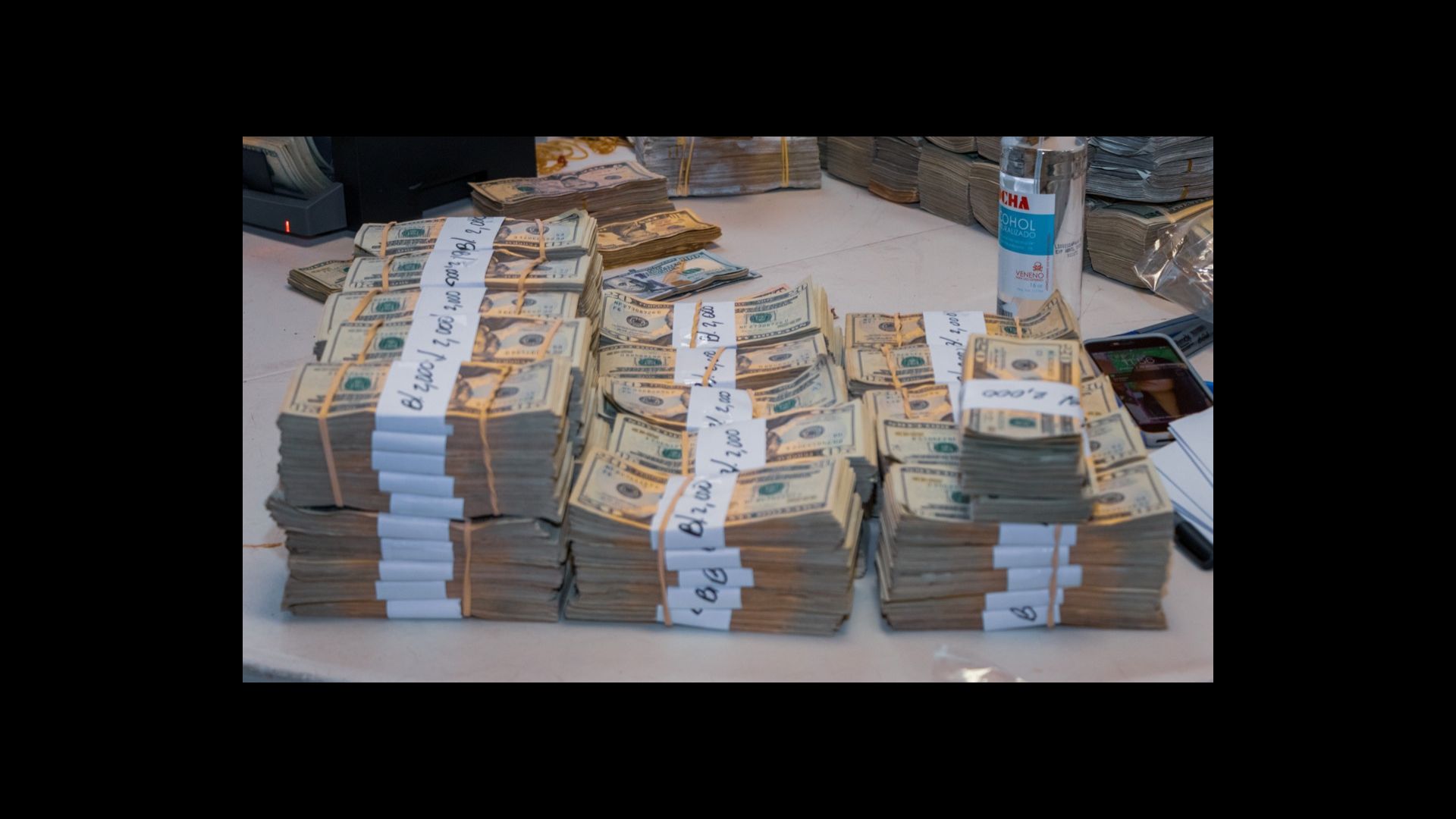 Este certero golpe contra el crimen organizado, realizado por la Fiscalía Especializada en Delitos Relacionados con Drogas, en conjunto con las unidades especializadas de la Policía Nacional y el SENAN, logró en su primera fase, el decomiso de B/.94,181.00 en efectivo, lo que suma a un gran total B/.10,091,871.00.