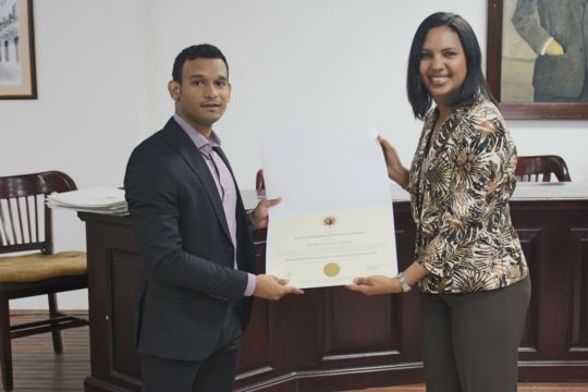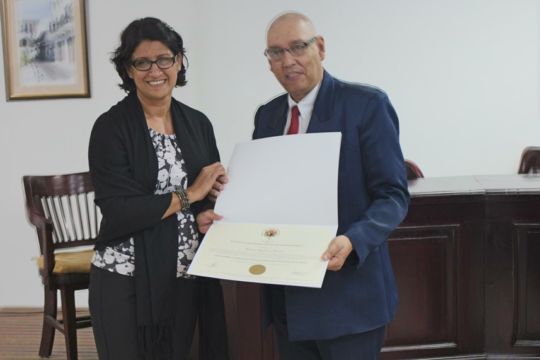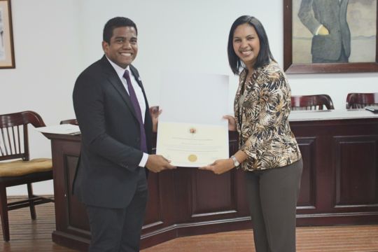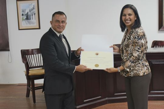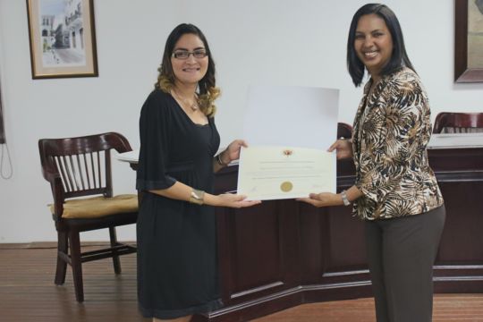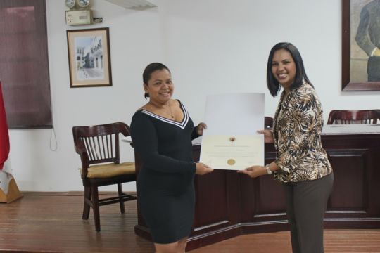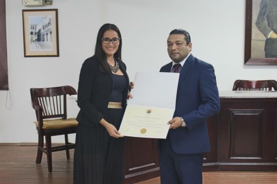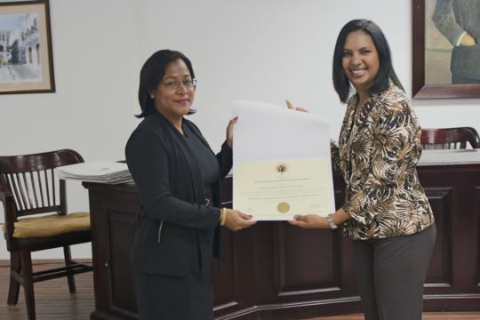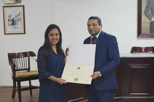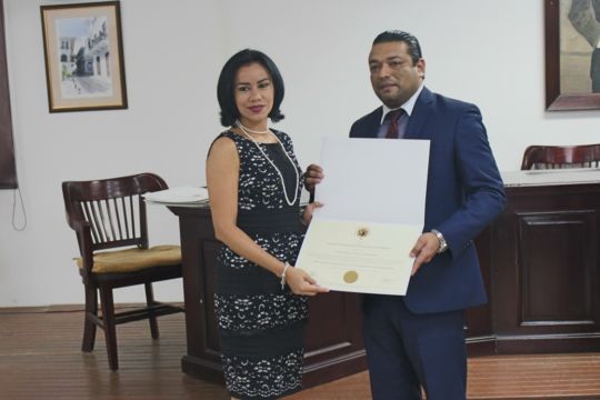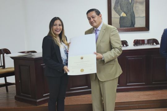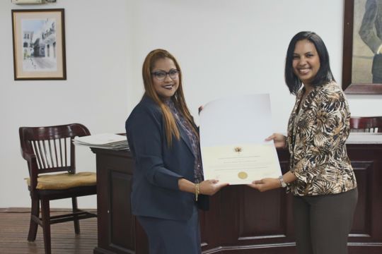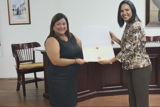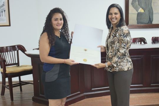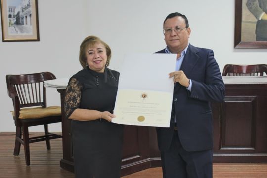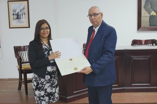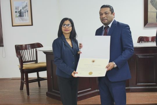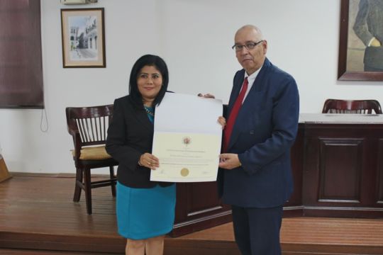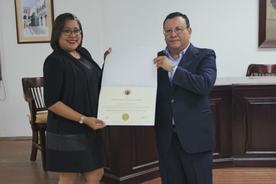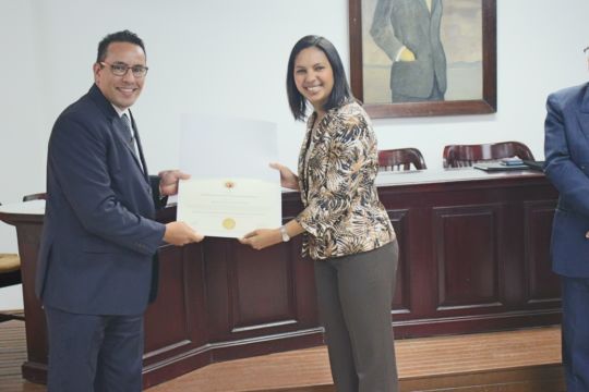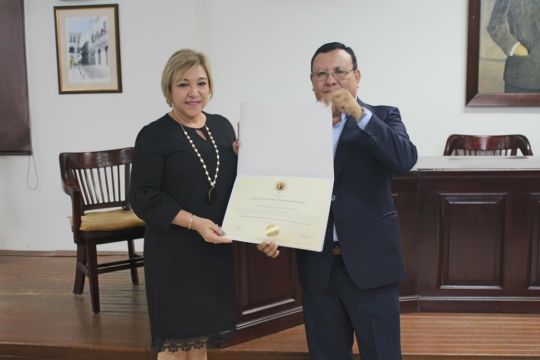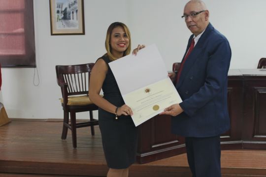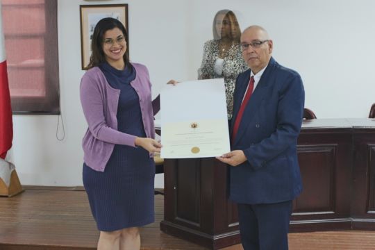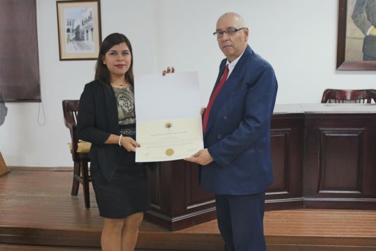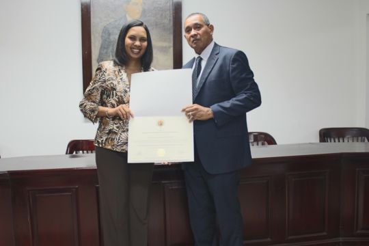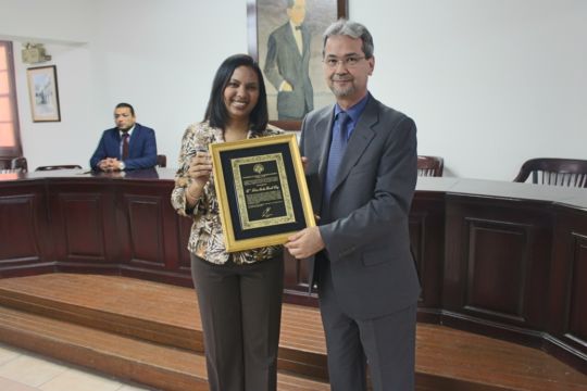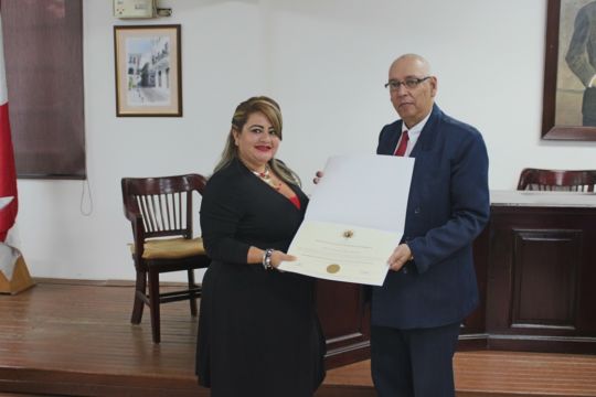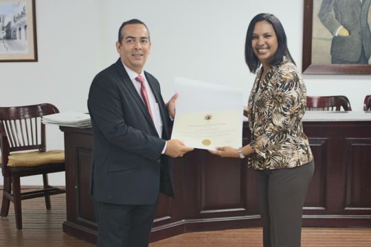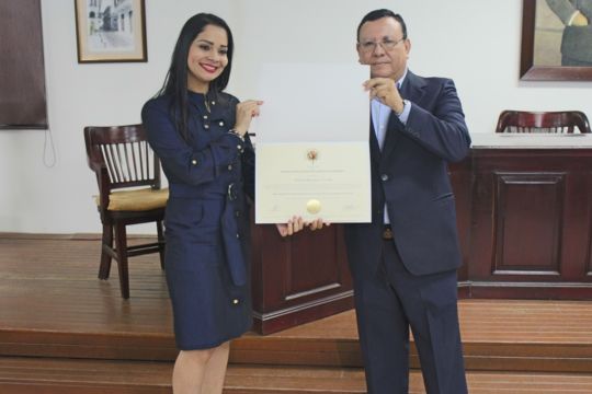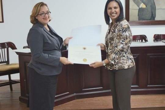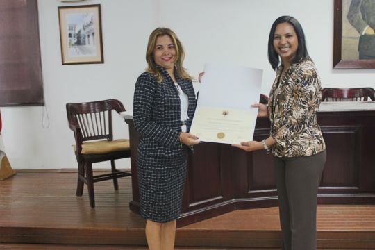 El evento sirvió de marco para hacer llegar un reconocimiento a la Procuradora General de la Nación, emitido por el INEJ, por su alto sentido de compromiso, responsabilidad y visión en el ejercicio del cargo, promoviendo programas de estudios superiores para el personal de la institución que dirige y los abogados panameños en general.