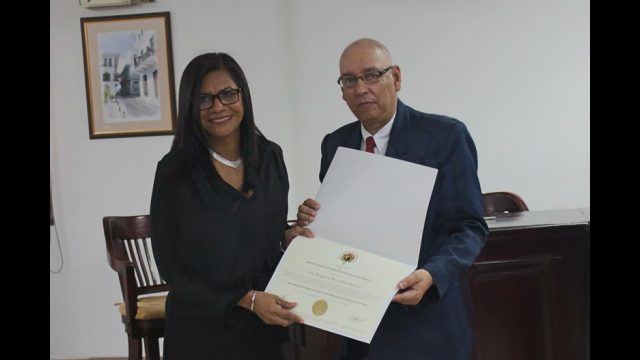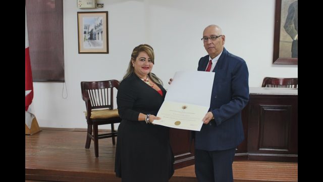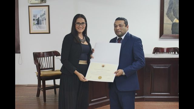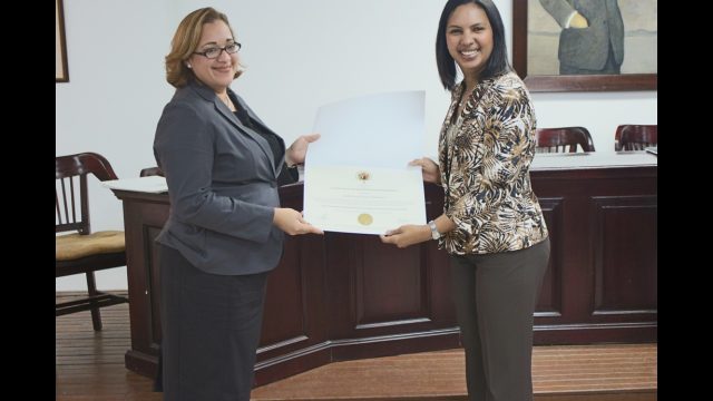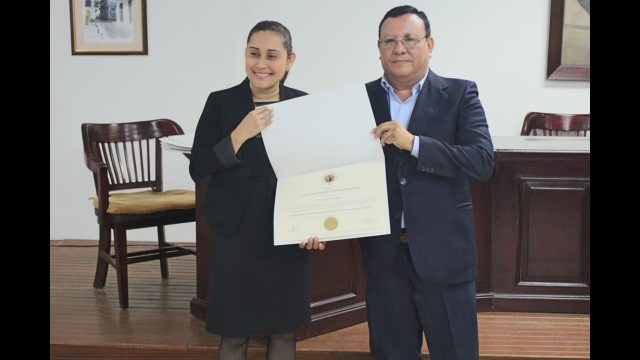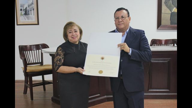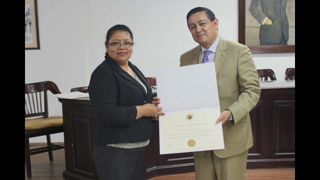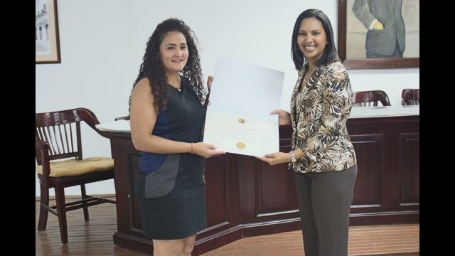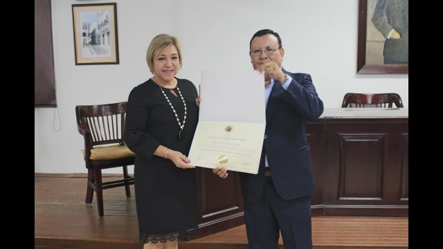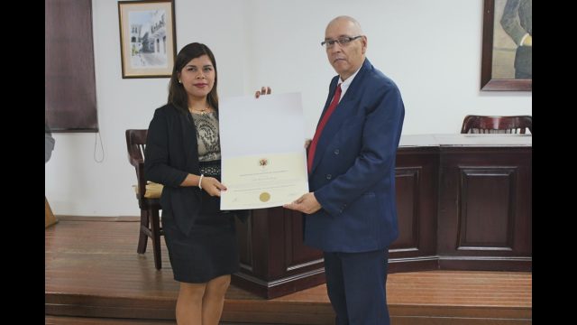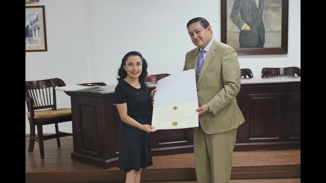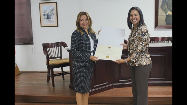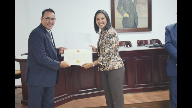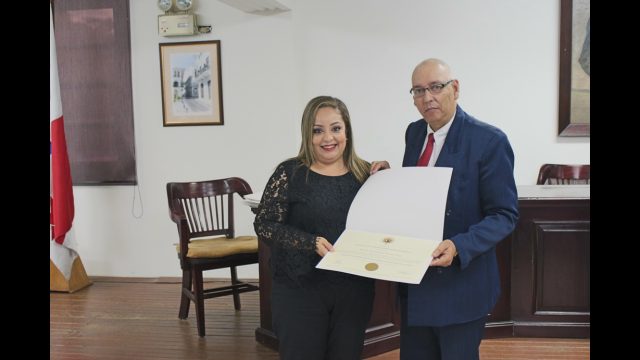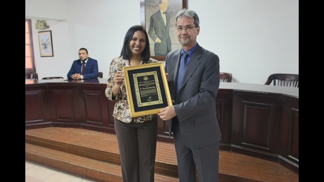 El evento sirvió de marco para hacer llegar un reconocimiento a la Procuradora General de la Nación, emitido por el INEJ, por su alto sentido de compromiso, responsabilidad y visión en el ejercicio del cargo, promoviendo programas de estudios superiores para el personal de la institución que dirige y los abogados panameños en general.