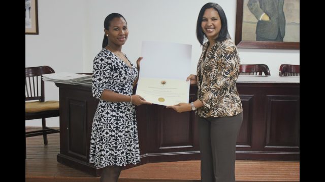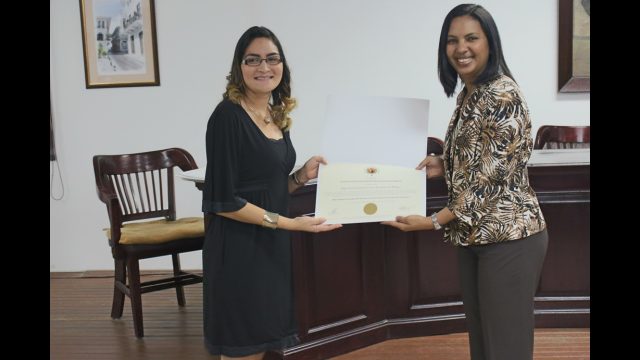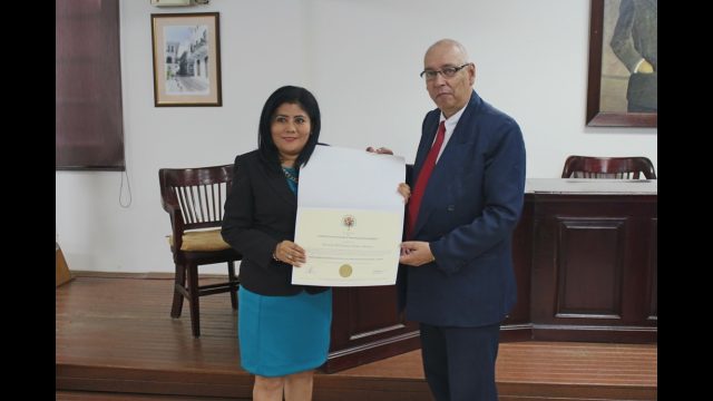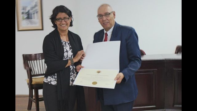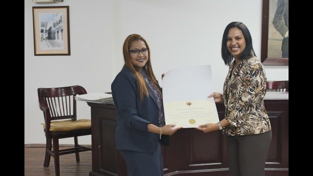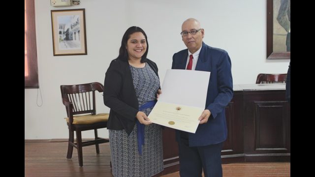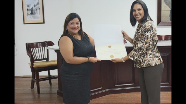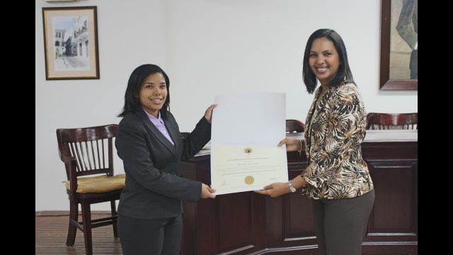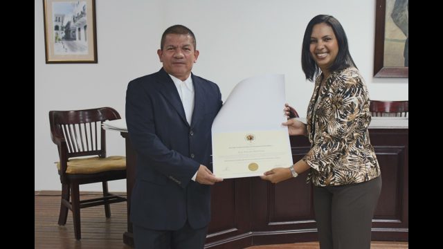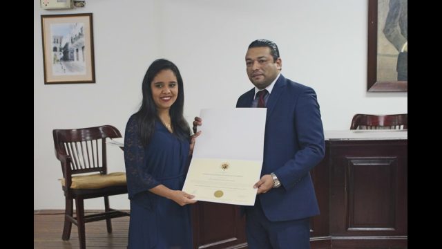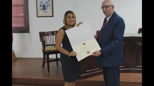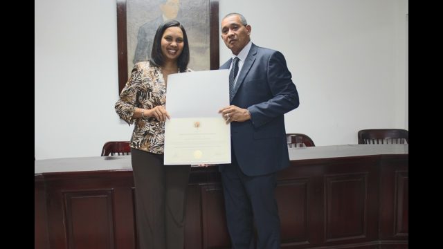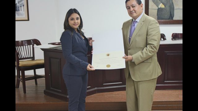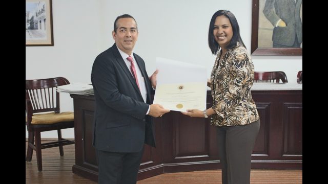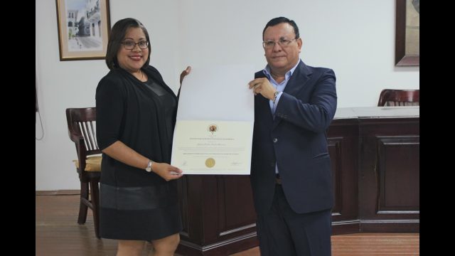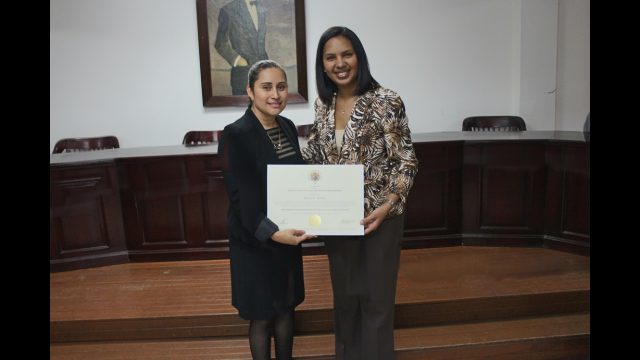 El evento sirvió de marco para hacer llegar un reconocimiento a la Procuradora General de la Nación, emitido por el INEJ, por su alto sentido de compromiso, responsabilidad y visión en el ejercicio del cargo, promoviendo programas de estudios superiores para el personal de la institución que dirige y los abogados panameños en general.