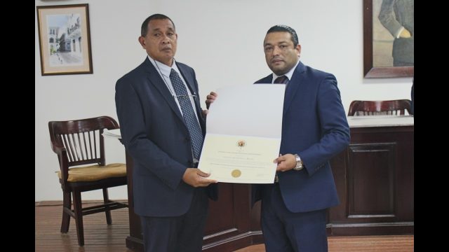 Entre los presentes estuvieron el Dr. Sergio Cuarezma Terán del INEJ, Delia De Castro, Directora de la Escuela del Ministerio Público, Silvio Grijalva Silva y Carlos Alberto Mejías Rodriguez, docentes del Diplomado, Dionicio Rodríguez y Juan Kuan por la Junta Directiva del Colegio Nacional de Abogados, así como en modalidad virtual nos acompañó Gustavo A. Arocena, Profesor de Derecho Penal de la Universidad de Cordoba, Argentina y Codirector del CIIDPE, quien envió un mensaje a los participantes y autoridades presentes en el acto de graduación.