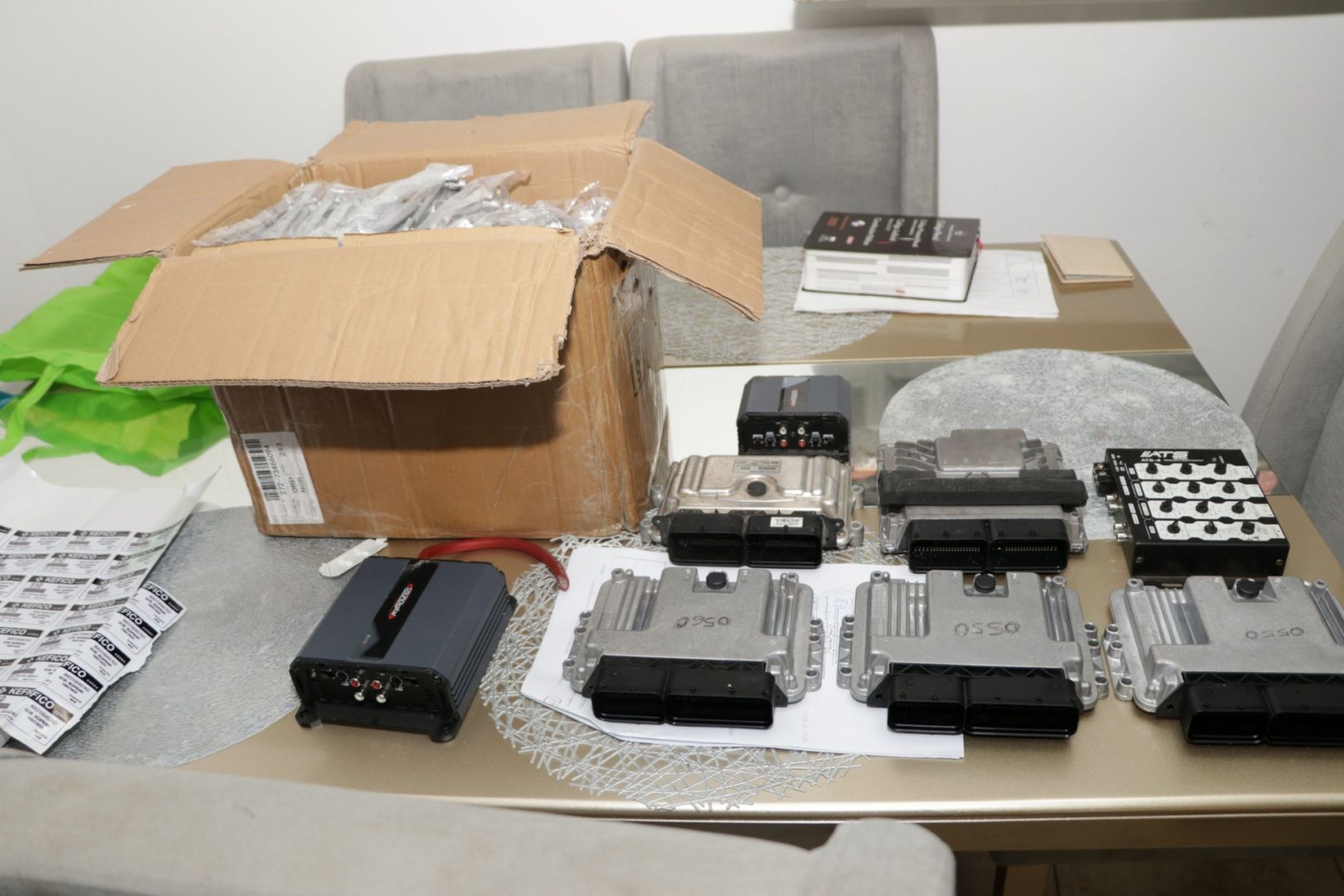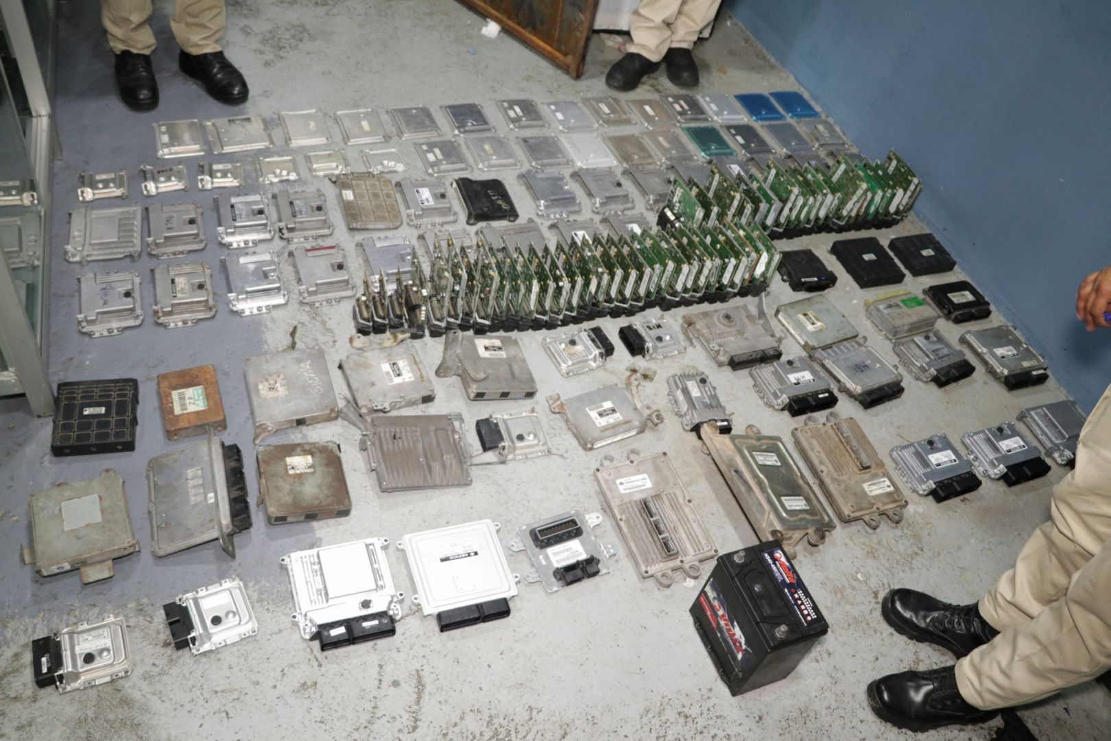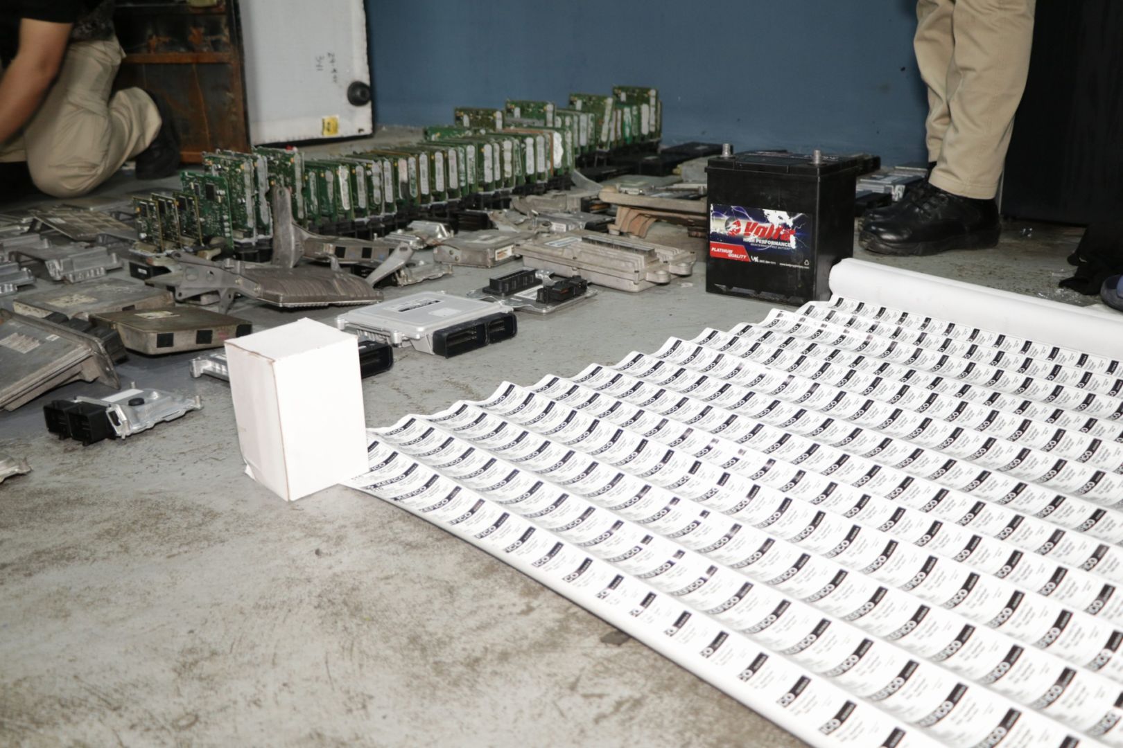 En la diligencia se decomisaron más de 100 computadoras de autos, y diversos stickers con números seriales repetidos para modificar las computadoras hurtadas y hacerlas ver como nuevas, además de 34 carcasas de computadoras.