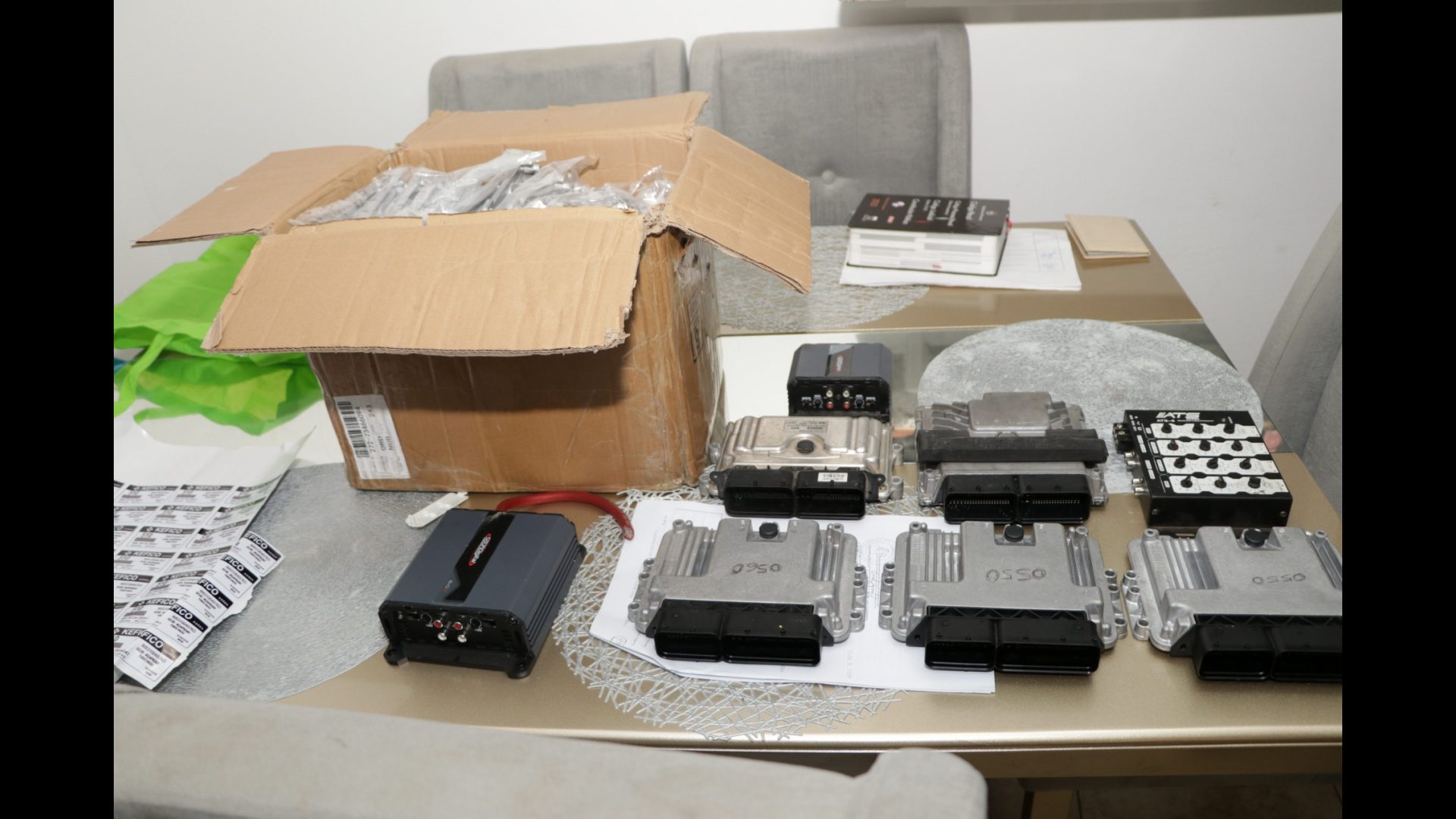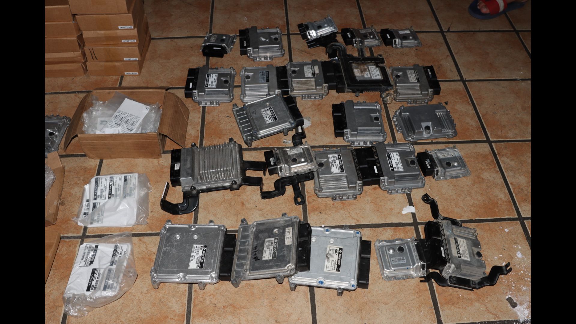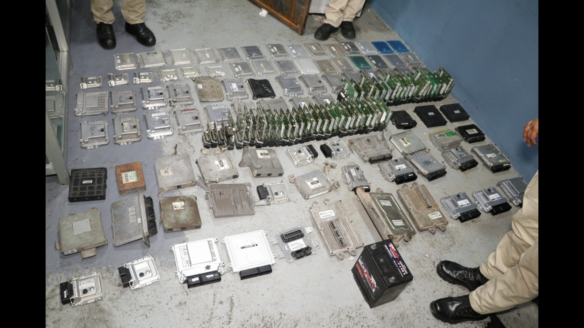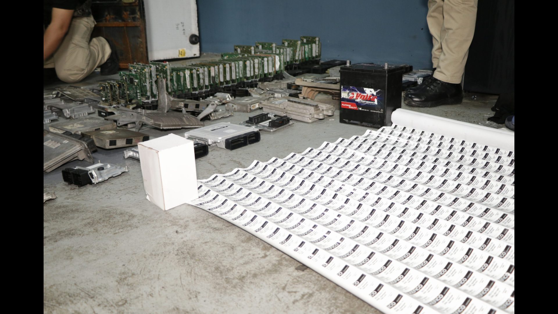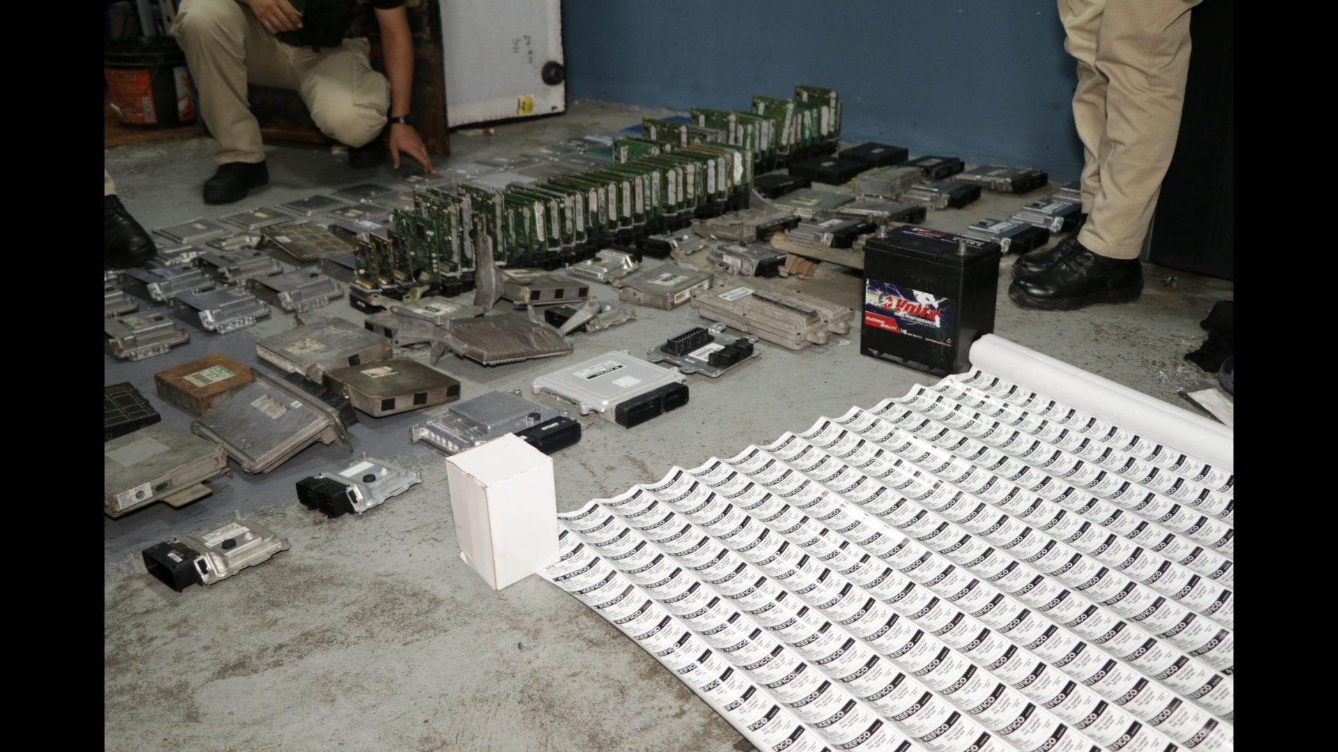 En la diligencia se decomisaron más de 100 computadoras de autos, y diversos stickers con números seriales repetidos para modificar las computadoras hurtadas y hacerlas ver como nuevas, además de 34 carcasas de computadoras.