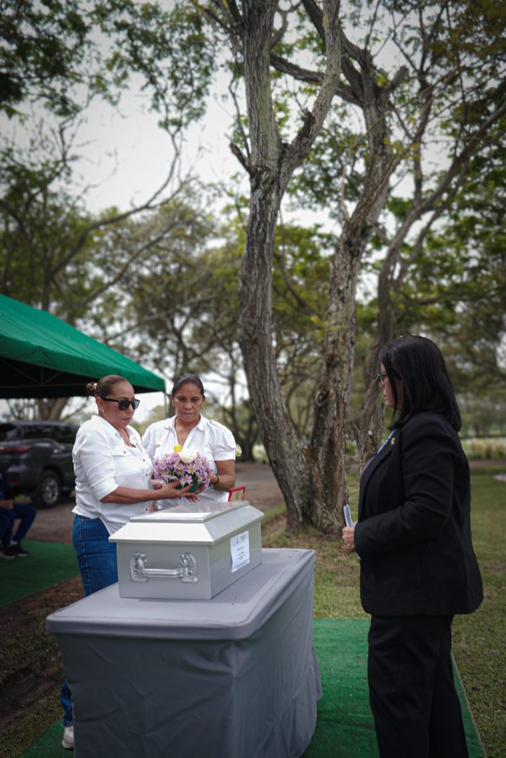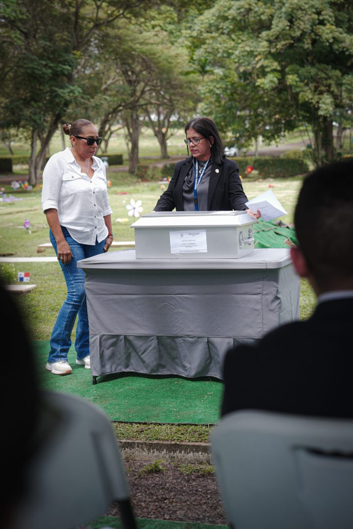 La Sección de Descarga de la Fiscalía Metropolitana, representada por la fiscal Superior Geomara Guerra, hizo entrega de los restos óseos de Luis Carlos Méndez Hernández, a su hermana Carmen Cecilia Méndez Hernández, en una ceremonia que se realizó este 12 de noviembre de 2025, en el Jardín de Paz.