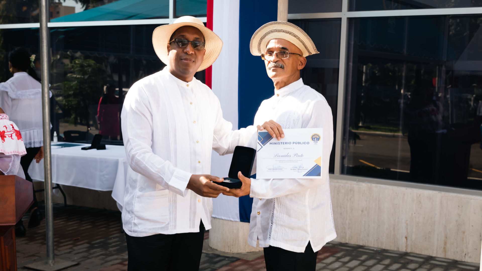 El Procurador aprovechó este escenario para hacer un importante reconocimiento al compromiso de 8 funcionarios, con más de 45 años de servicio, destacando que estas personas han sido maestros y guías de cientos de funcionarios y exfuncionarios y que, en su devenir, se han convertido en colaboradores y testigos de transformación y consolidación de la institución. Además, agradeció el señor Procurador a cada uno de ellos por su dedicación y compromiso institucional y la voluntad de permanecer en el Ministerio Público por más de 4 décadas.