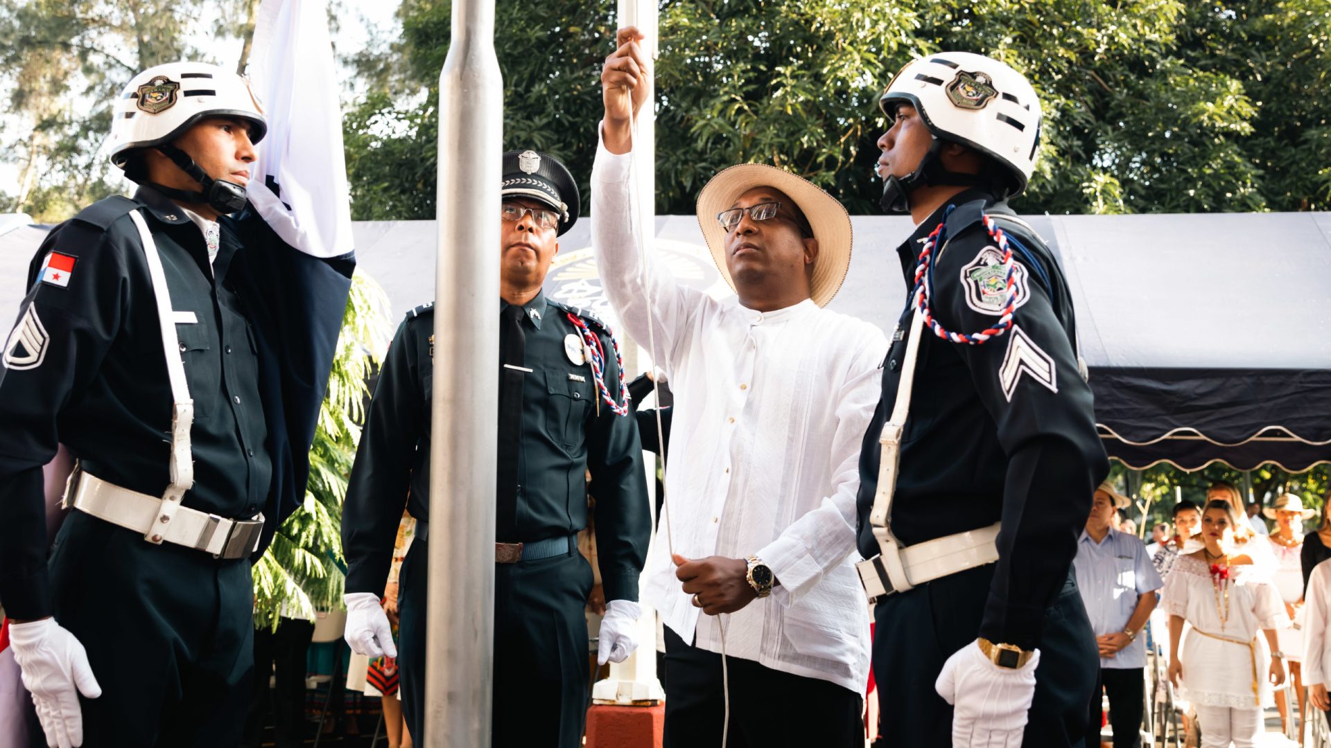 Luego de la izada a la bandera, se dio el Juramento a la Bandera, que estuvo a cargo de la fiscal Superior Anticorrupción, Ruth Morcillo; Juramento creado por la educadora y poetisa Ernestina Sucre, quien lo presentó ante el Presidente de la República Ernesto de la Guardia Jr., en 1959, quien lo remitió a la Asamblea Nacional, donde fue adoptado mediante la Ley 24 del 31 de enero de 1959.