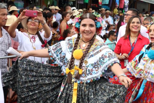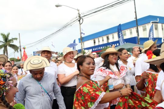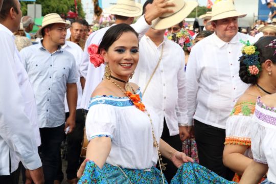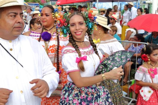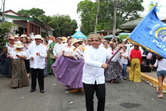 Las damas del Ministerio Público ataviadas con hermosas polleras de lujo, basquiñas, montunas, faldones y joyas, como los varones con sus vistosas camisillas y sombreros típicos engalanaron este evento considerado uno de los más concurridos del país.