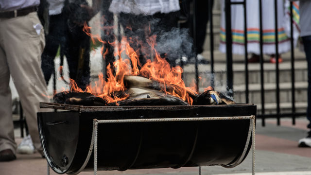 La ceremonia inició con la invocación religiosa y posteriormente las autoridades procedieron al acto de cremación; Rafael Pino Pinto, Gobernador de Panamá, dijo que con este acto se inician las efemérides patrias en la capital y por ende en todo el país.