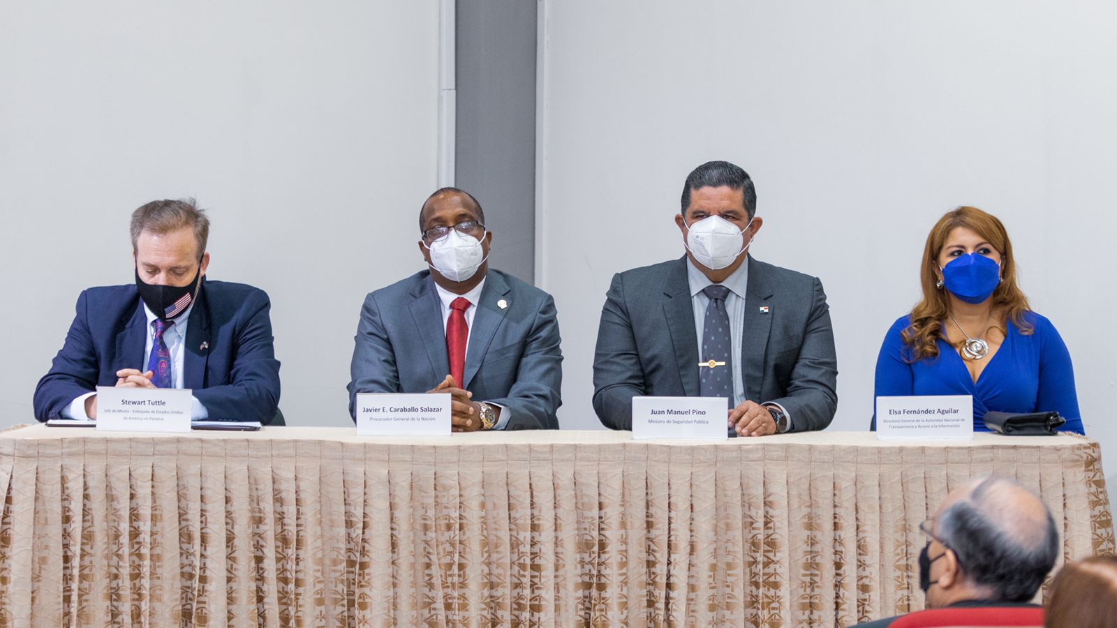 En este acto acompañaron al Procurador el Ministro de Seguridad Pública, Juan Manuel Pino; la Directora General de la Autoridad Nacional de Transparencia y Acceso a la Información (ANTAI), Elsa Fernández Aguilar; y el Jefe de Misión de la Embajada de Estados Unidos de América en Panamá, Stewart Tuttle.