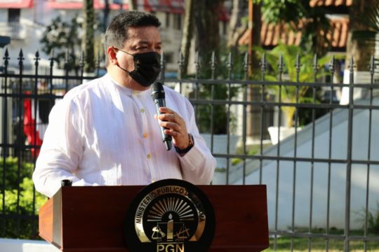 El Ministerio Público dio inicio a los actos protocolares del mes de la Patria, con la izada de la bandera por parte del Fiscal Superior de la Sección de Atención Primaria de la Fiscalía Metropolitana, Julio Villarreal; a quien cedió el honor el Procurador General de la Nación, Eduardo Ulloa Miranda, quien además estuvo acompañado por la Secretaria General Delia De Castro y la Sub Secretaria Ledye Machuca.