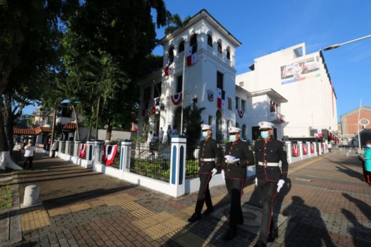 Este acto tuvo la participación del señor Vladimir Berrío-Lemm, director de la Comisión Nacional de los Símbolos de la Nación, como orador de fondo, quien destacó que vivimos en una democracia, que debemos proteger y seguir adelante como panameños, más cuando vivimos una pandemia, y resaltó el amor respeto que debemos sentir para con nuestra Patria.