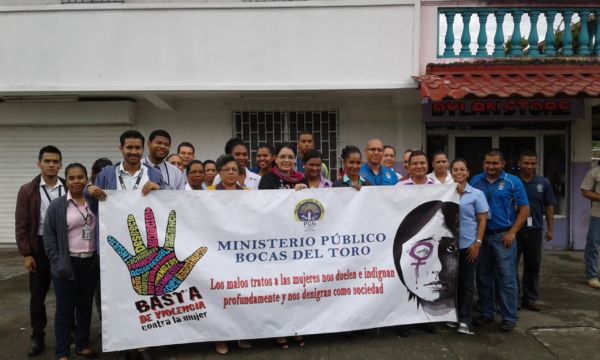 En la provincia de Bocas del Toro, 34 funcionarios del Ministerio acompañados por Fiscal Segundo Superior del Tercer Distrito Judicial, Licdo. Emeldo Marquez Pitti, participaron de la actividad de volanteo realizado en la avenida 17 de abril en la ciudad de Changuinola, cuyo objetivo era concientizar a la población sobre la Eliminación de la Violencia contra las Mujeres.
